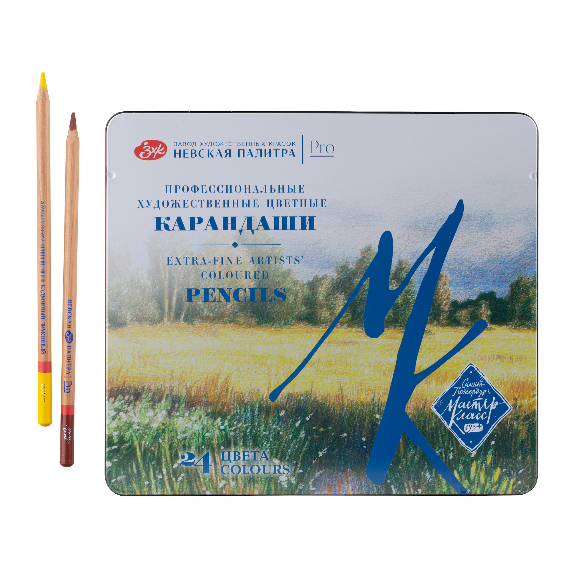 Купить Карандаши цветные профессиональные для рисования Мастер-Класс, 24 цвета, в жестяном пенале