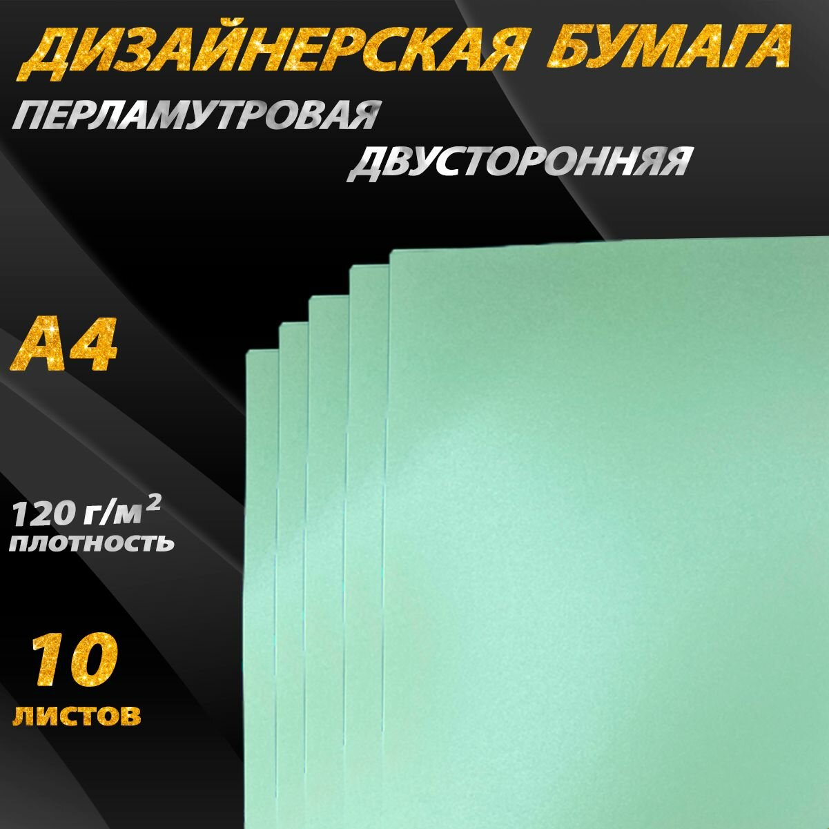 Купить Бумага перламутровая 120 г/м2 A4, 10 листов для скрапбукинга дизайнерская нежно-зеленая