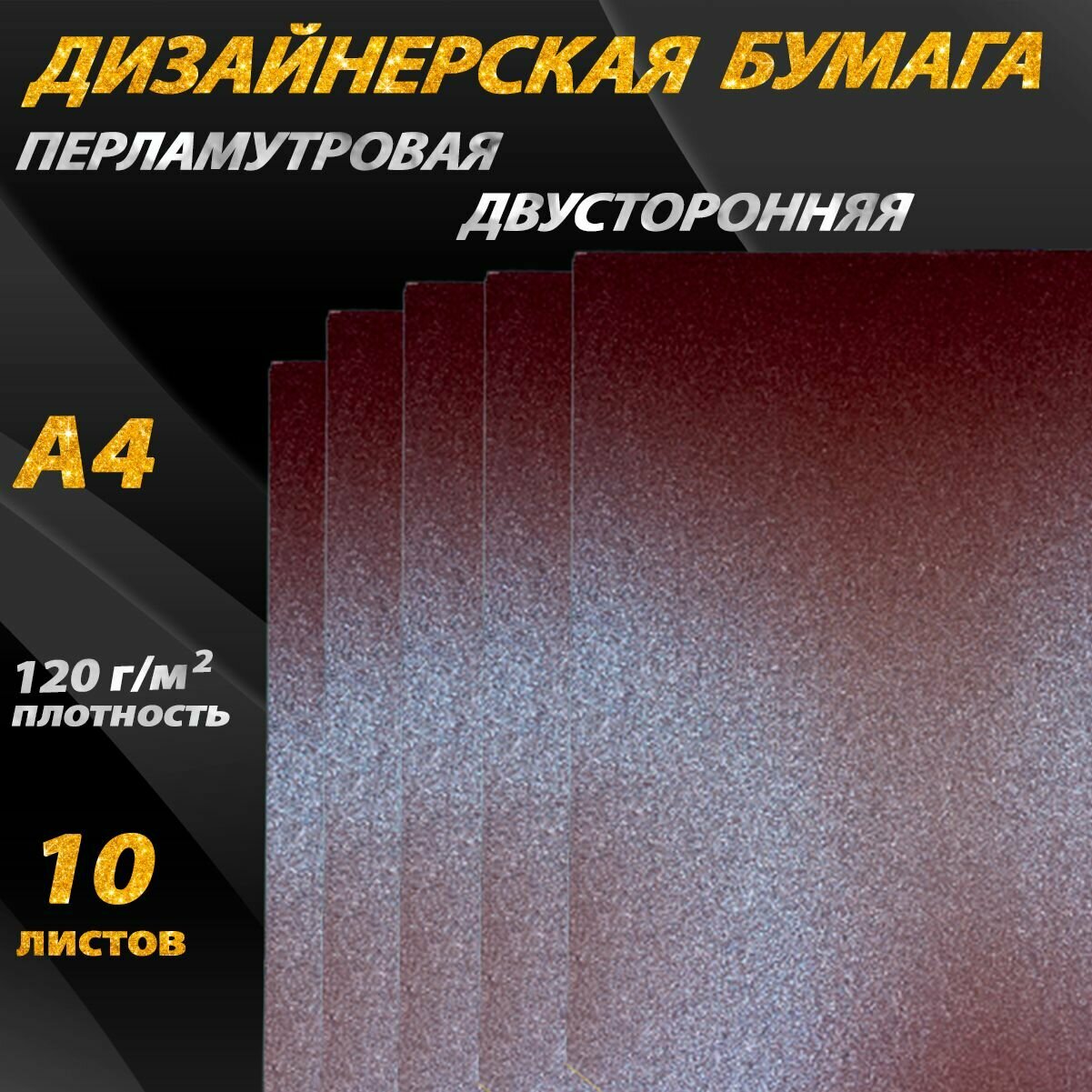 Купить Бумага перламутровая 120 г/м2 A4, 10 листов для скрапбукинга дизайнерская бордовая