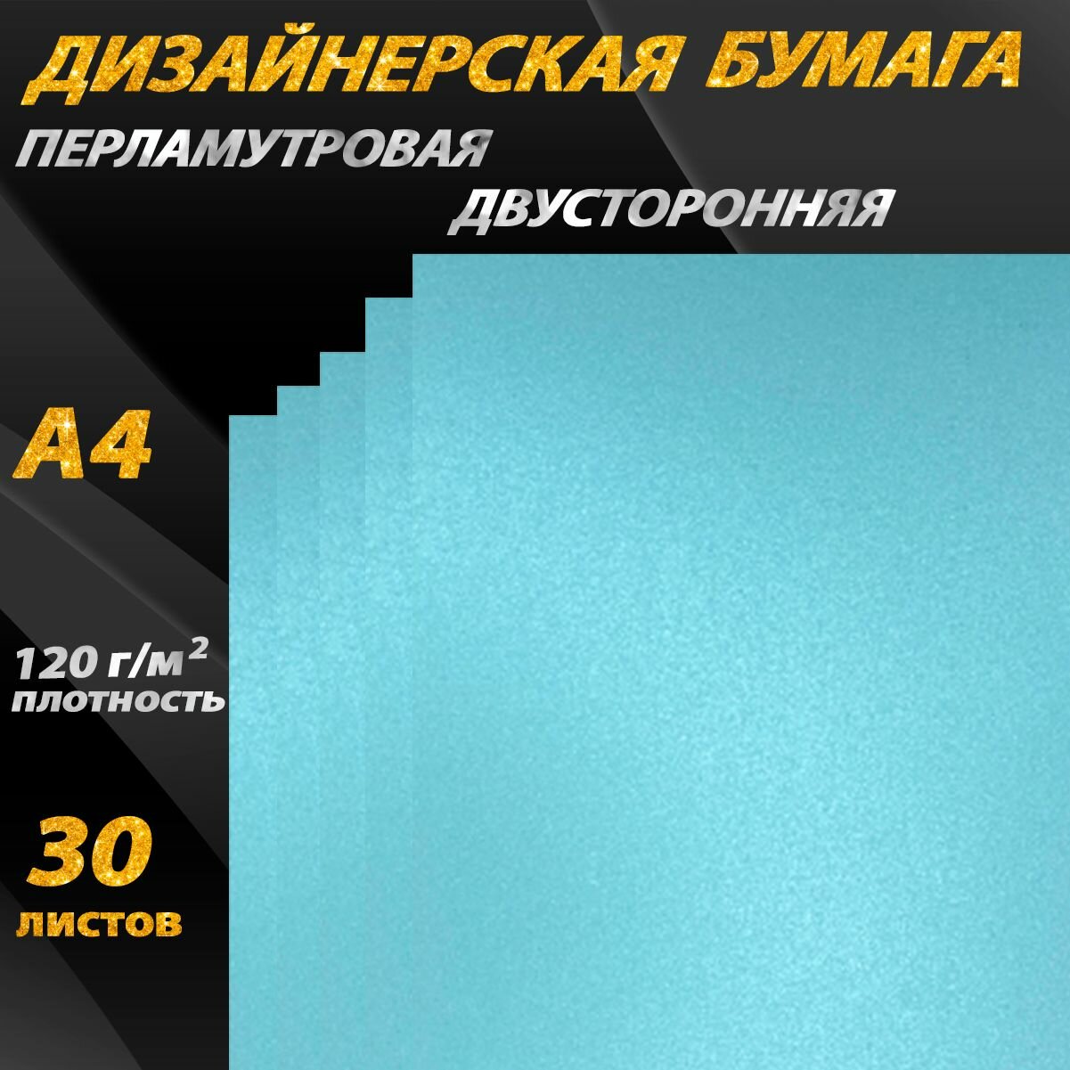 Купить Бумага перламутровая 120 г/м2 A4, 30 листов для скрапбукинга дизайнерская нежно-голубая