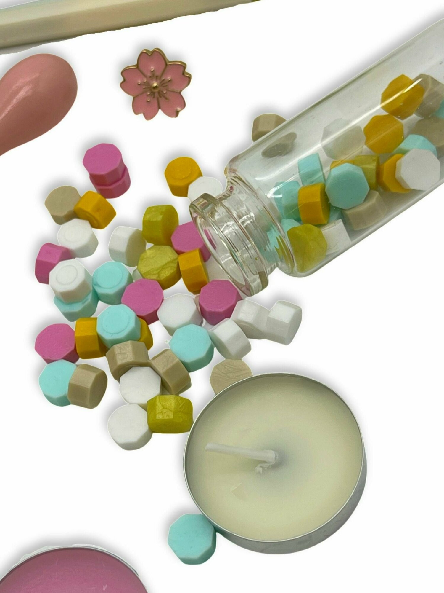 Подарочный набор для творчества: сургуч для скрапбукинга + восковая печать + штамп Dao Things - Розовый интересное: