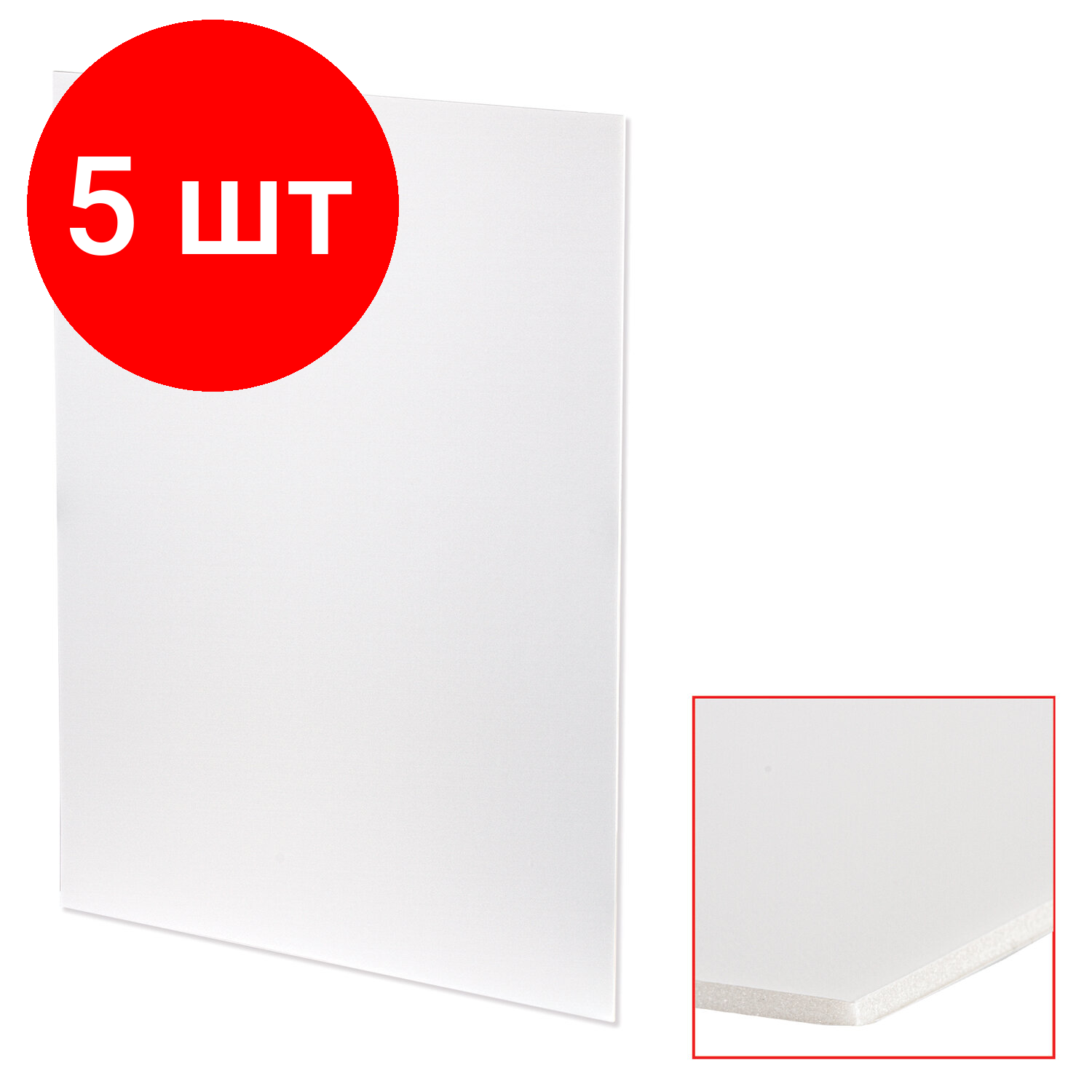 Пенокартон матовый, 50×70 см, толщина 3 мм, белый, комплект 5 листов, BRAUBERG