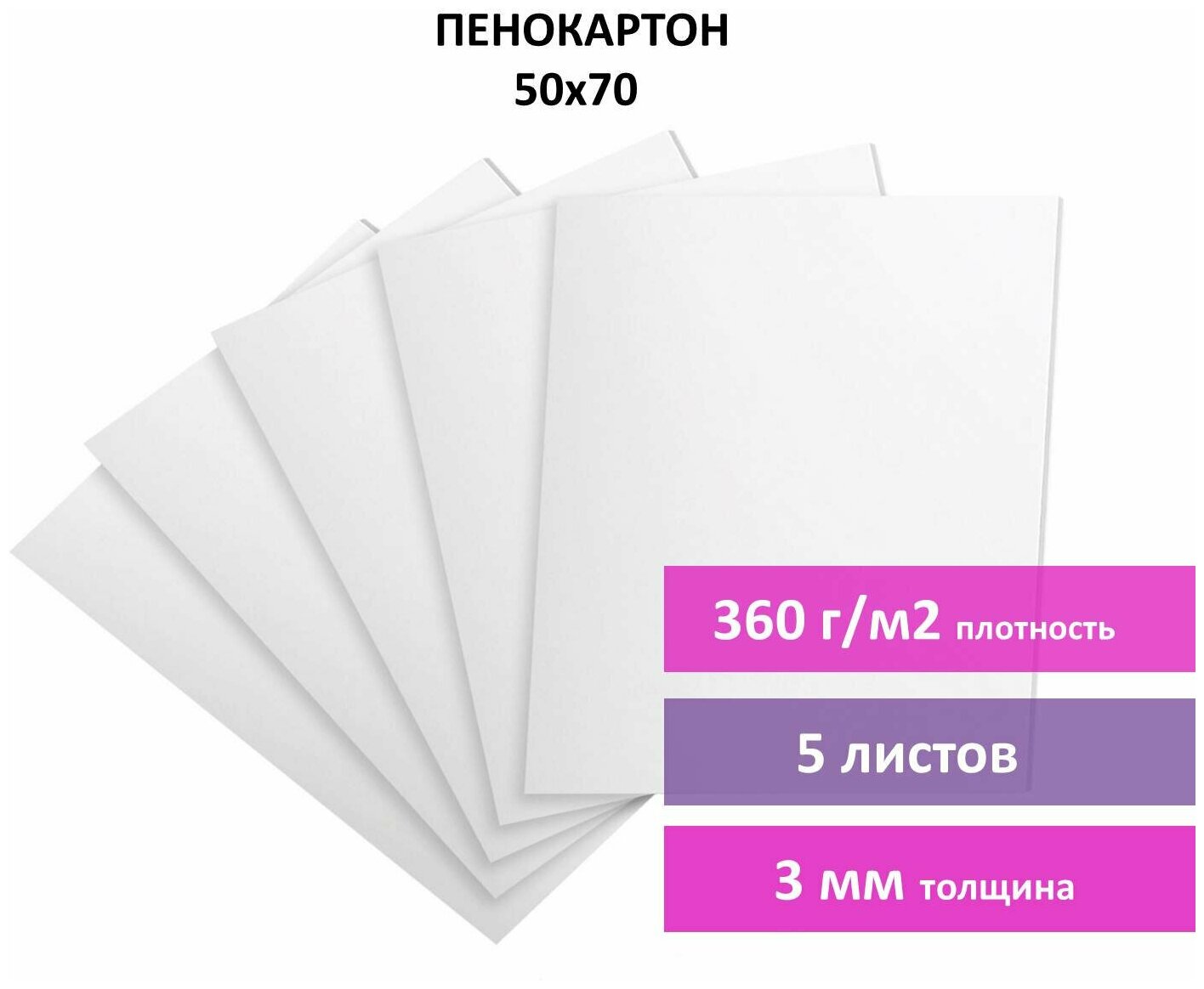 Купить Пенокартон Brauberg матовый, 50х70 см, толщина 3 мм, белый, 5 листов (112470)