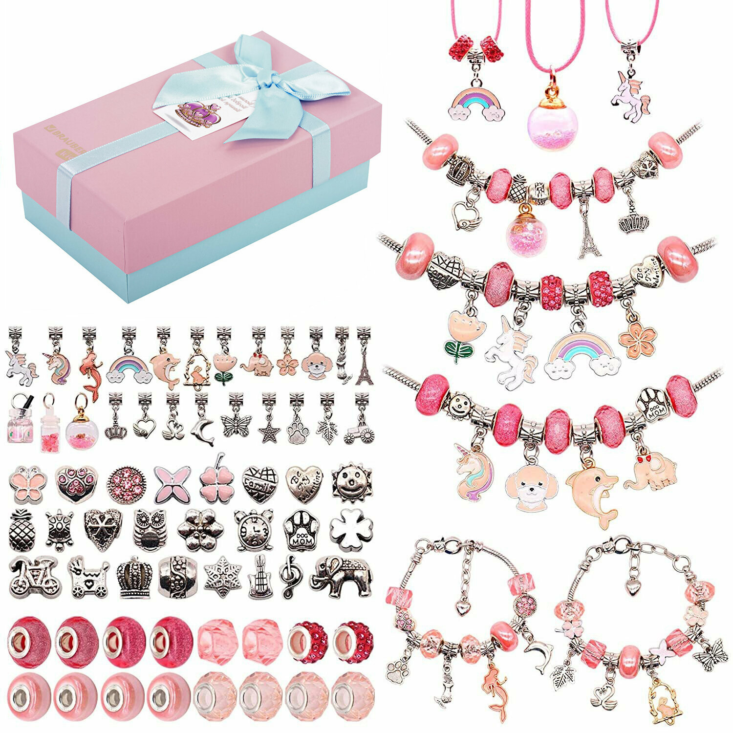 Купить Набор для творчества и создания украшений и браслетов для девочек подарочный детский 78 элементов, бусины, подвески для рукоделия, Brauberg Kids Премиум, 665294
