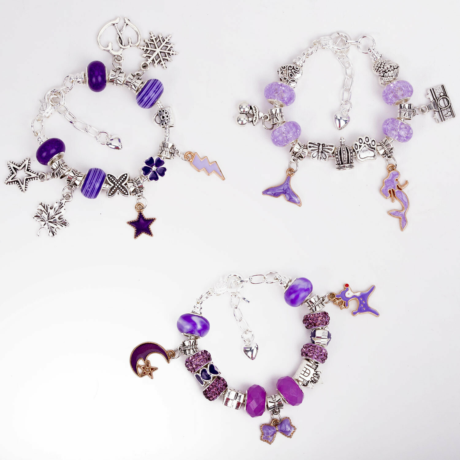 Набор для творчества и создания украшений и браслетов для девочек подарочный детский 66 элементов, бусины, шармы для рукоделия в боксе, Brauberg Kids Аметист, 665295