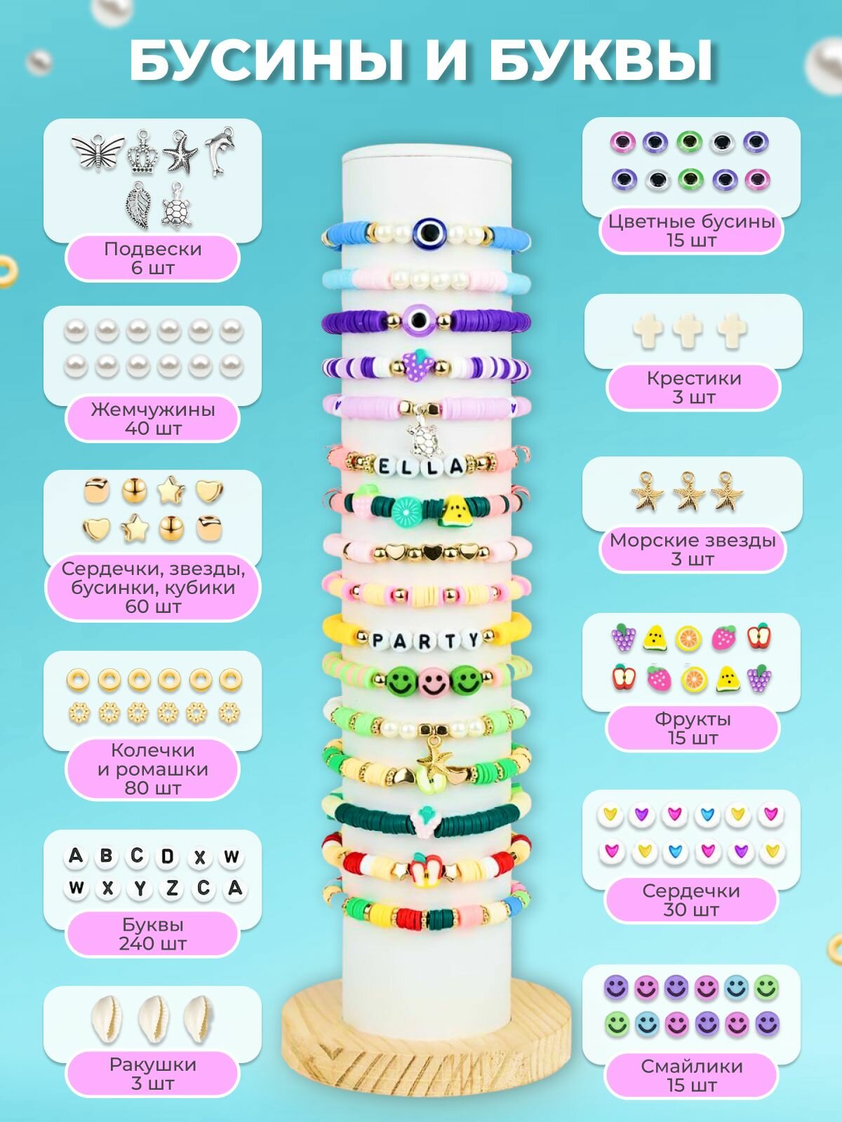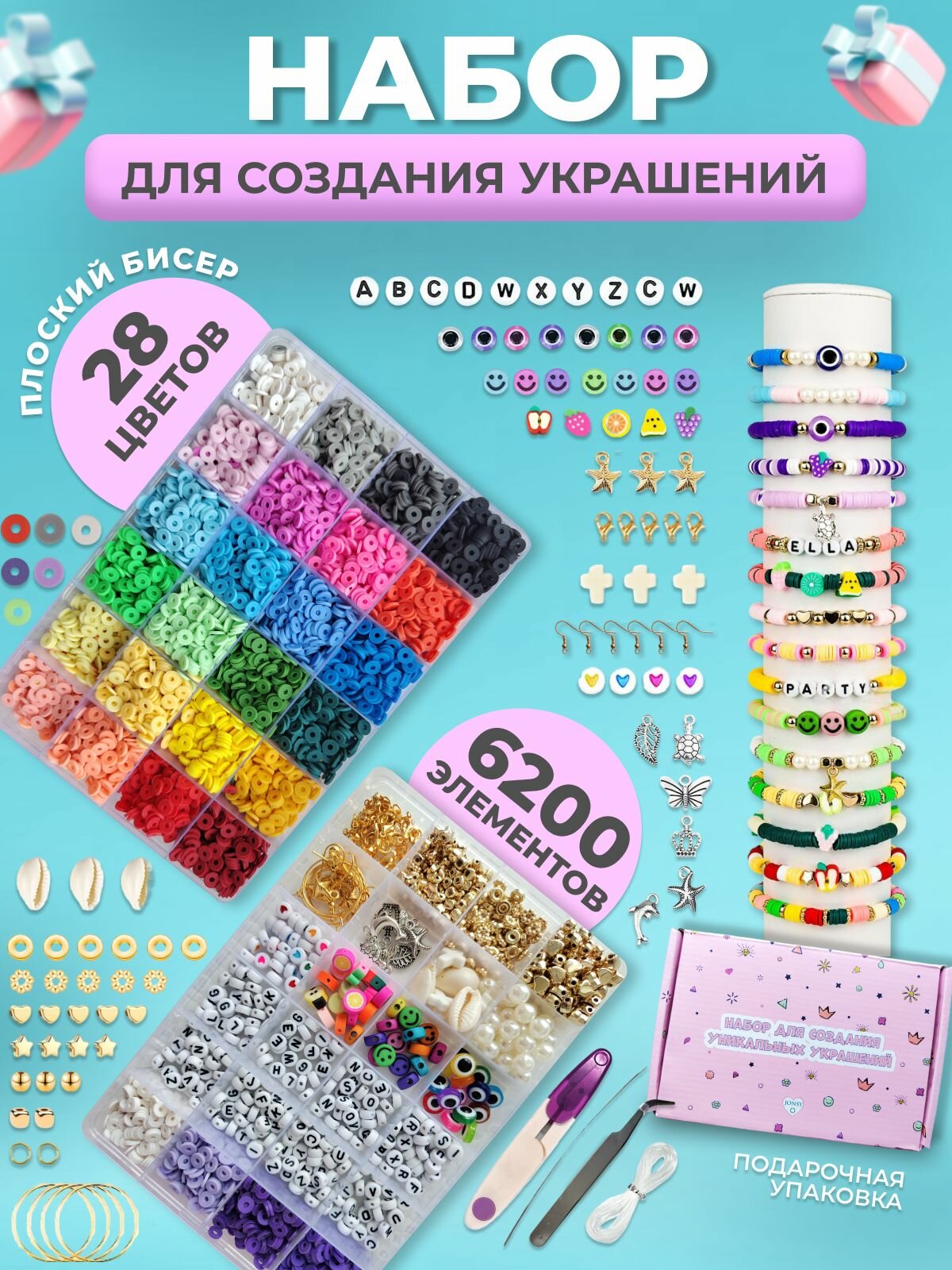| Комплектация | В набор входит Резиновые колечки: 5600 шт Бусины, подвески: 510 шт Колечки соединительные: 30 шт Каллоты: 20 шт Замочки: 10 шт Швензы: 6 шт Кольца для сережек: 6 шт Пинцет: 1 шт Ножницы: 1 шт Игла для насаживания: 1 шт Белая леска: 1 шт |