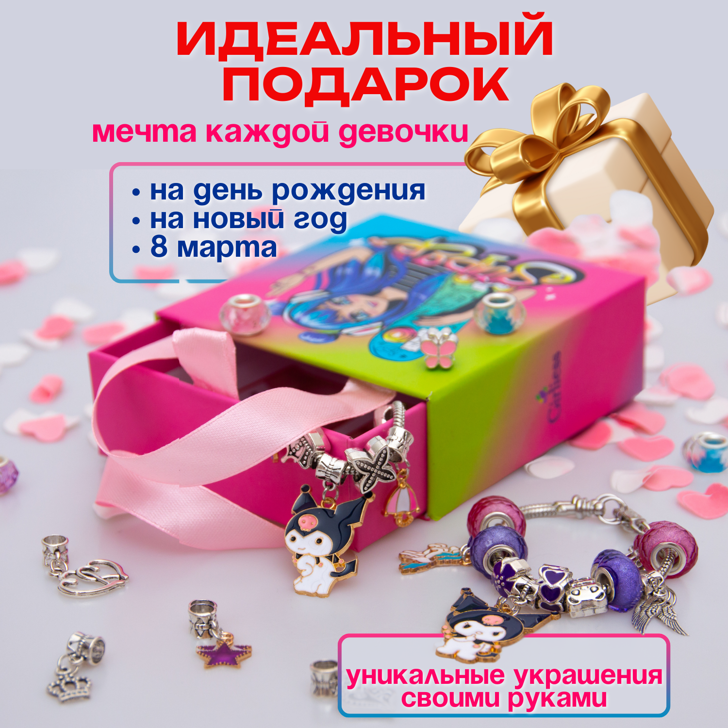 Купить Набор для творчества и создания браслетов Аниме в подарочной коробке детская бижутерия украшения подарок для девочки на день рождения выпускной 8 марта новый год