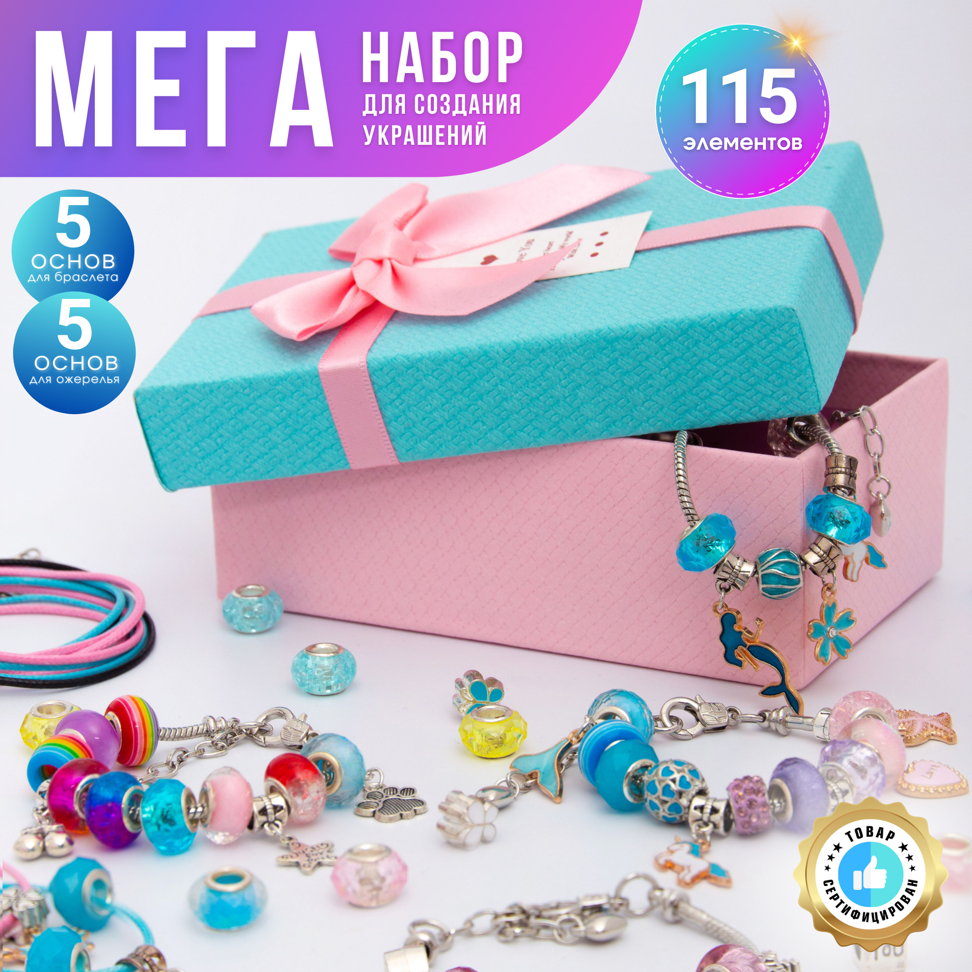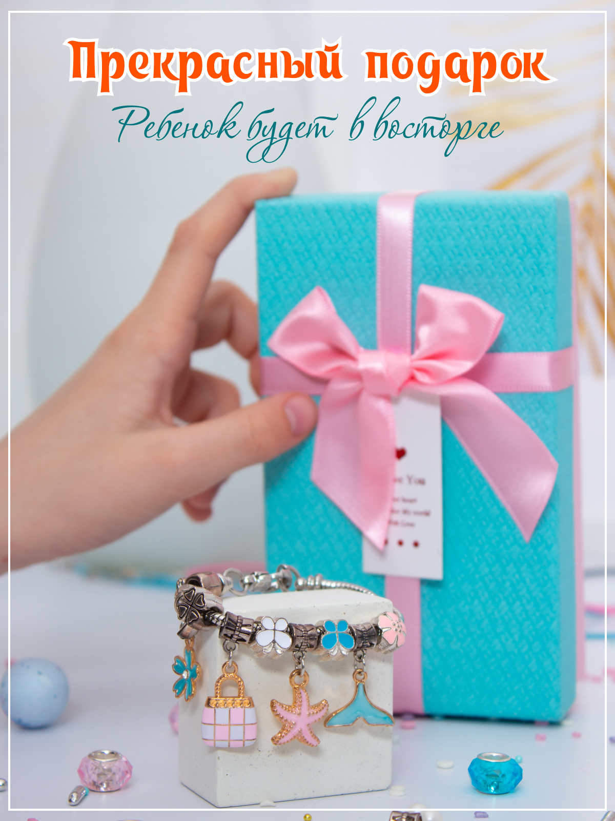 Набор для творчества и создания браслетов в подарочной коробке детская бижутерия украшения подарок для девочки на день рождения выпускной новый год 8 марта