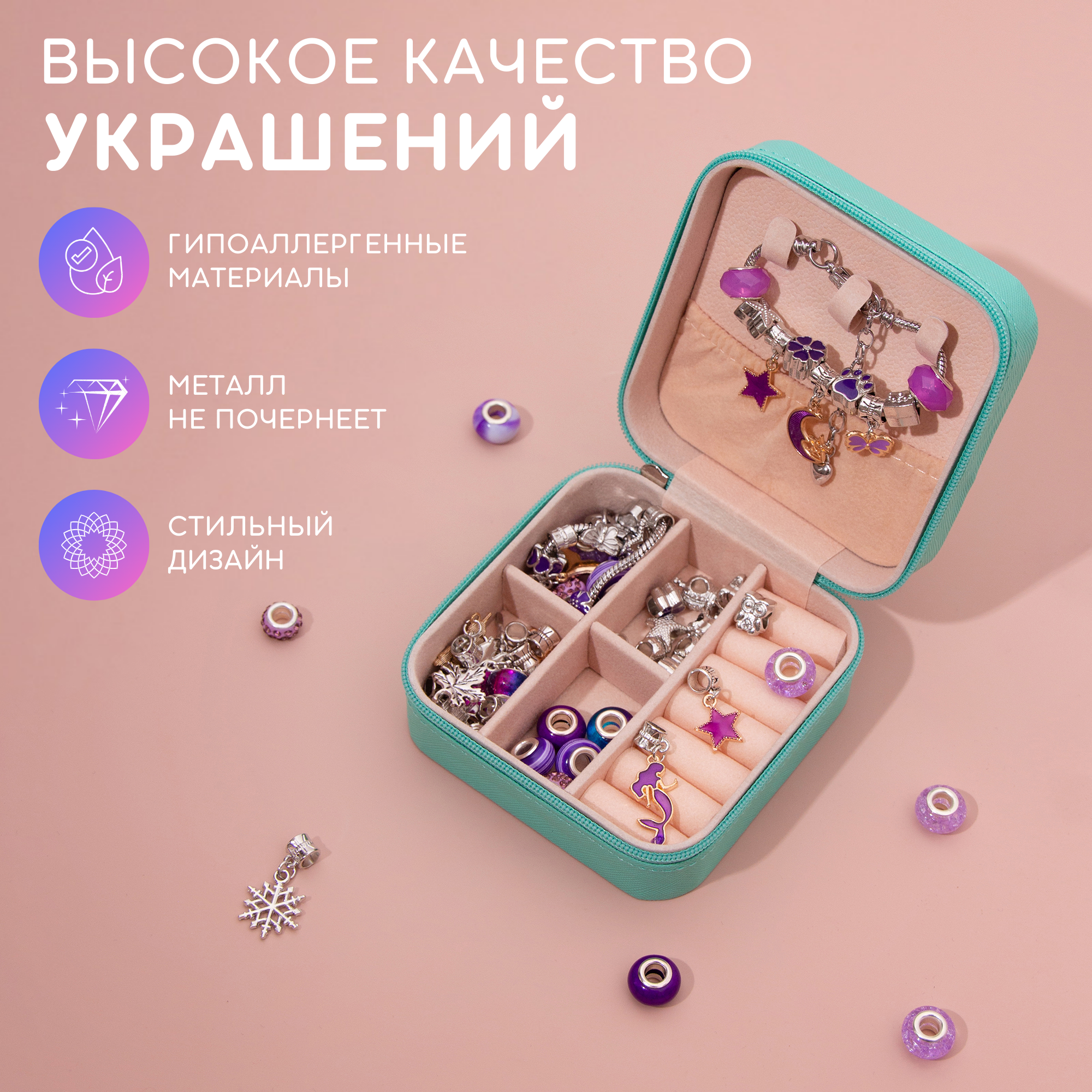 Набор для творчества и создания браслетов в подарочной коробке детская бижутерия украшения подарок для девочки на день рождения выпускной новый год 8 марта