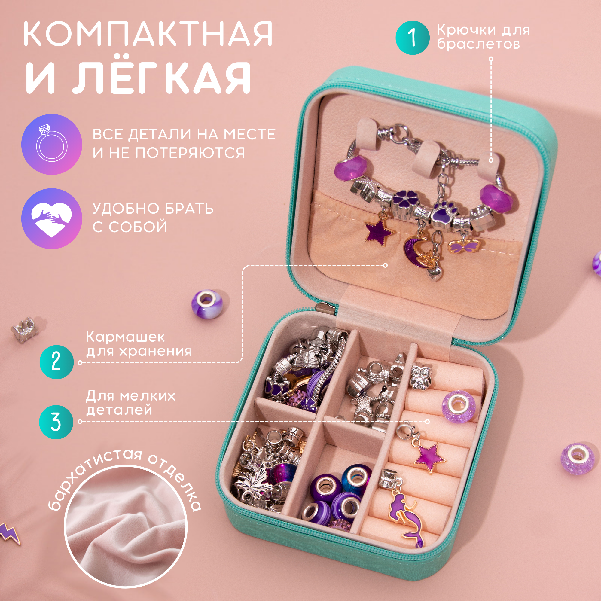 Купить Набор для творчества и создания браслетов в подарочной шкатулке детская бижутерия украшения подарок для девочки на день рождения выпускной 8 марта новый год