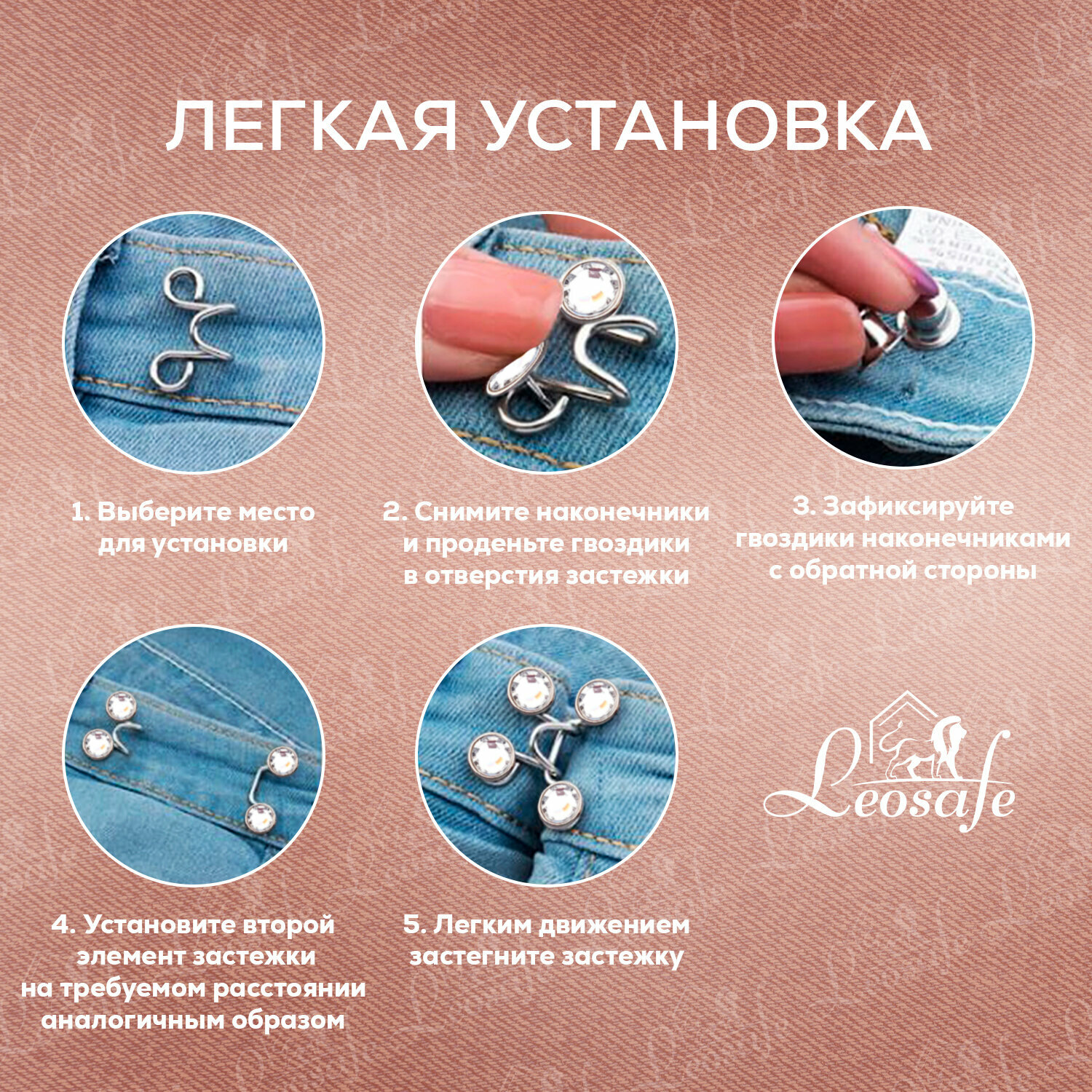 Застежки "LeoSafe" для уменьшения талии, комплект 5 штук