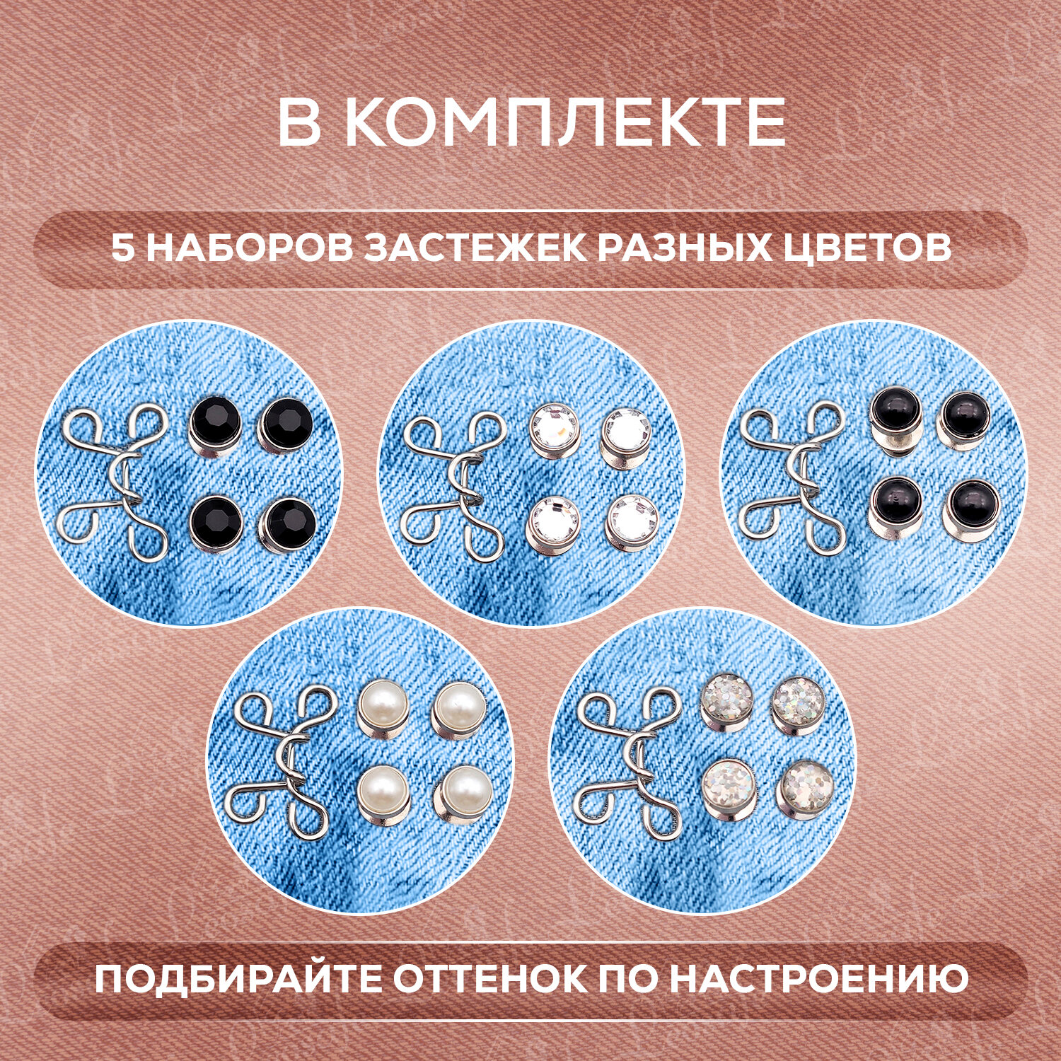 Купить Застежки для уменьшения размера в талии, жемчужные и алмазные, комплект - 5 шт.
