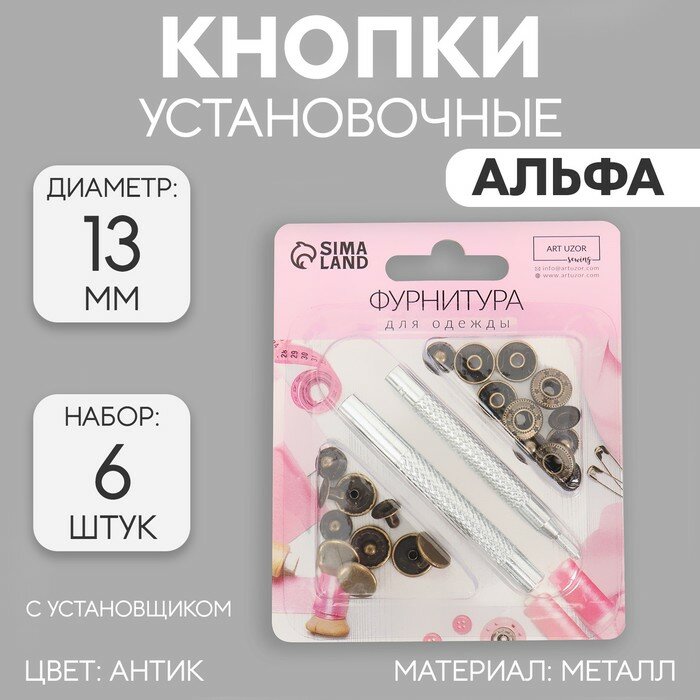 Купить Кнопки S-образные d13мм (наб 6шт цена за наб) с инстр-м для устан в блистере антик АУ 5307372