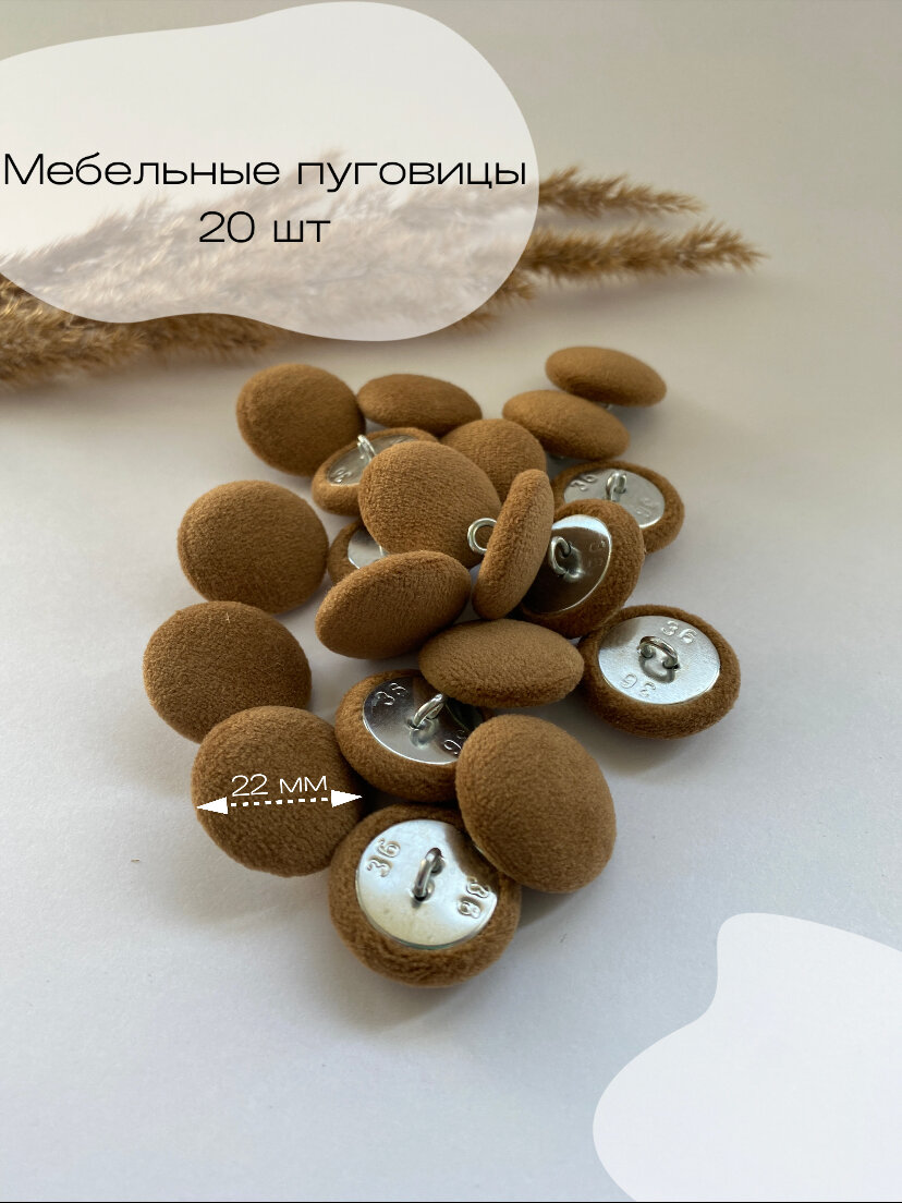 Пуговицы для каретной стяжки, велюр светло-коричневый 20 шт интересное:
