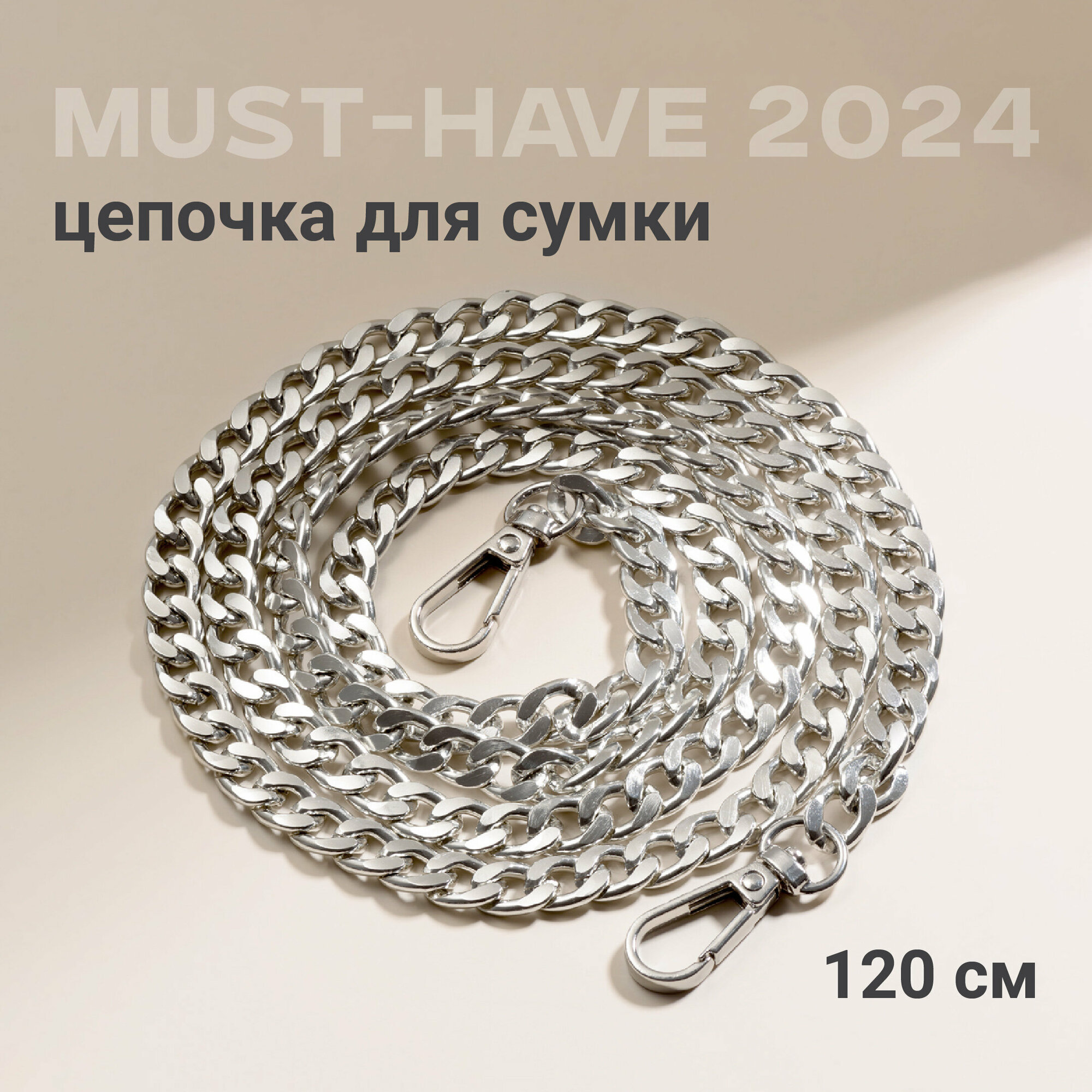 Купить Цепочка для сумки с карабином, JewelryMeverly, Металлическая фурнитура для сумок, Ремешок - ручка на сумку, 120 см, Цвет серебро