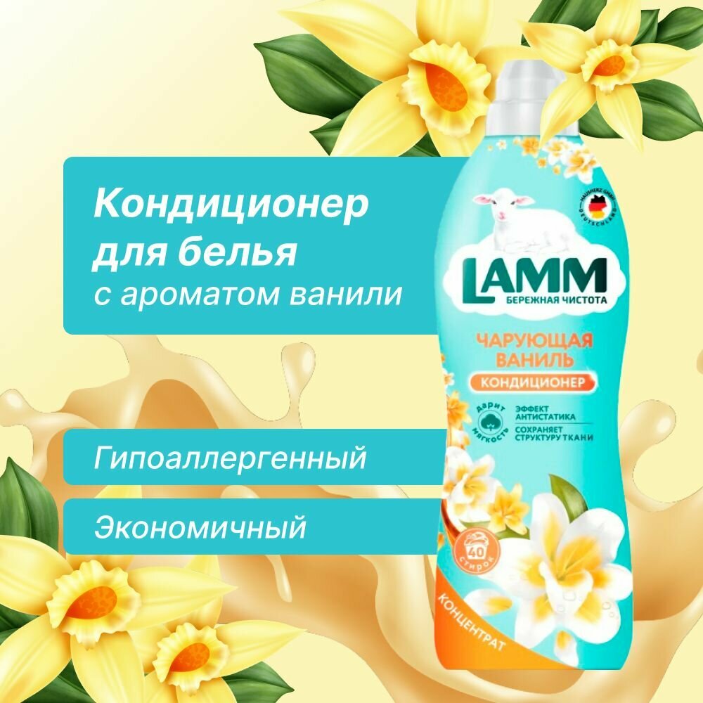 LAMM Чарующая ваниль кондиционер для белья универсальный концентрат ополаскиватель антистатик для всех типов тканей 1 л 40 стирок