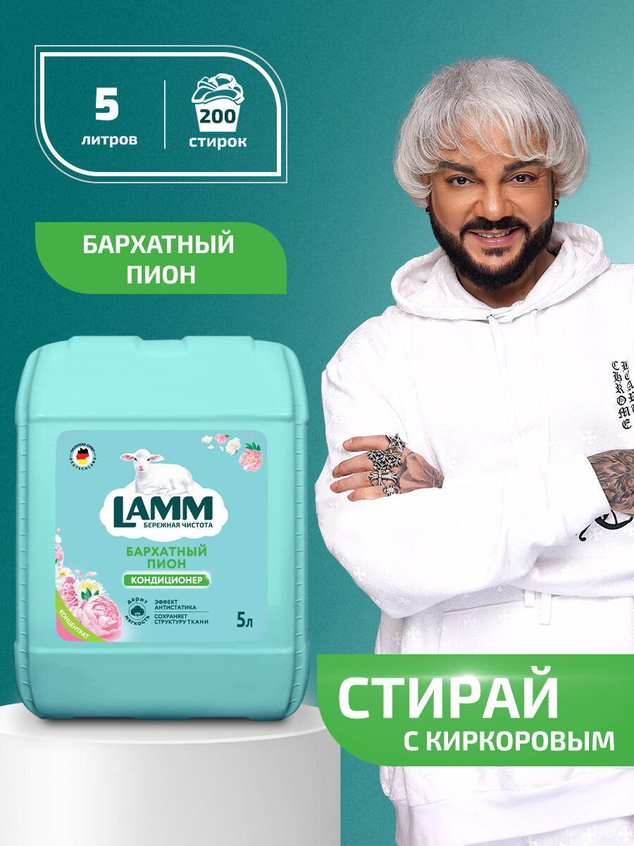 LAMM Бархатный пион кондиционер для белья универсальный концентрат ополаскиватель антистатик для всех типов тканей 200 стирок 5 л