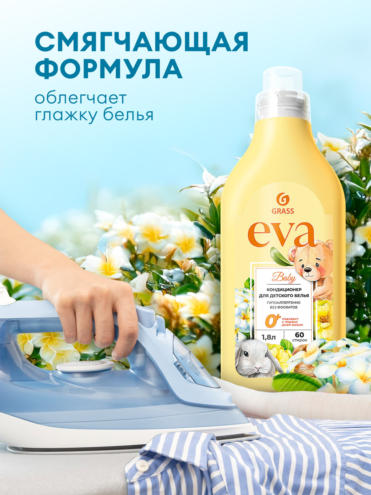 Купить Кондиционер-ополаскиватель для белья Grass EVA Baby детский, концентрированный, 1.8 л