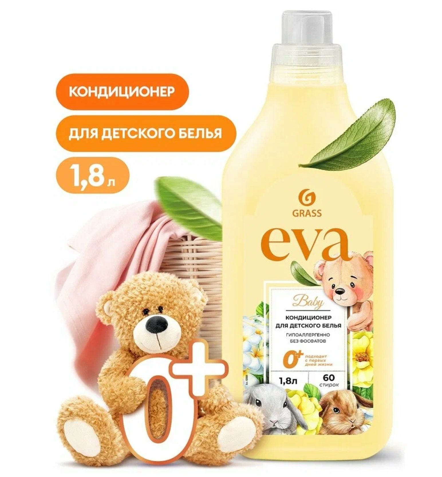 Кондиционер ополаскиватель Grass для детского белья Eva Baby, гипоаллергенный 1.8 л