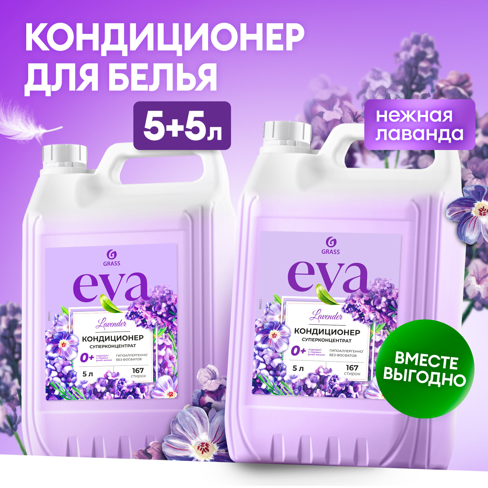 Кондиционер для белья Grass EVA Lavander концентрированный 5л.+5 л. интересное: