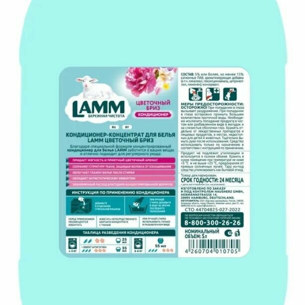 Кондиционер для белья LAMM Цветочный бриз 5000мл 4260704010705 интересное: