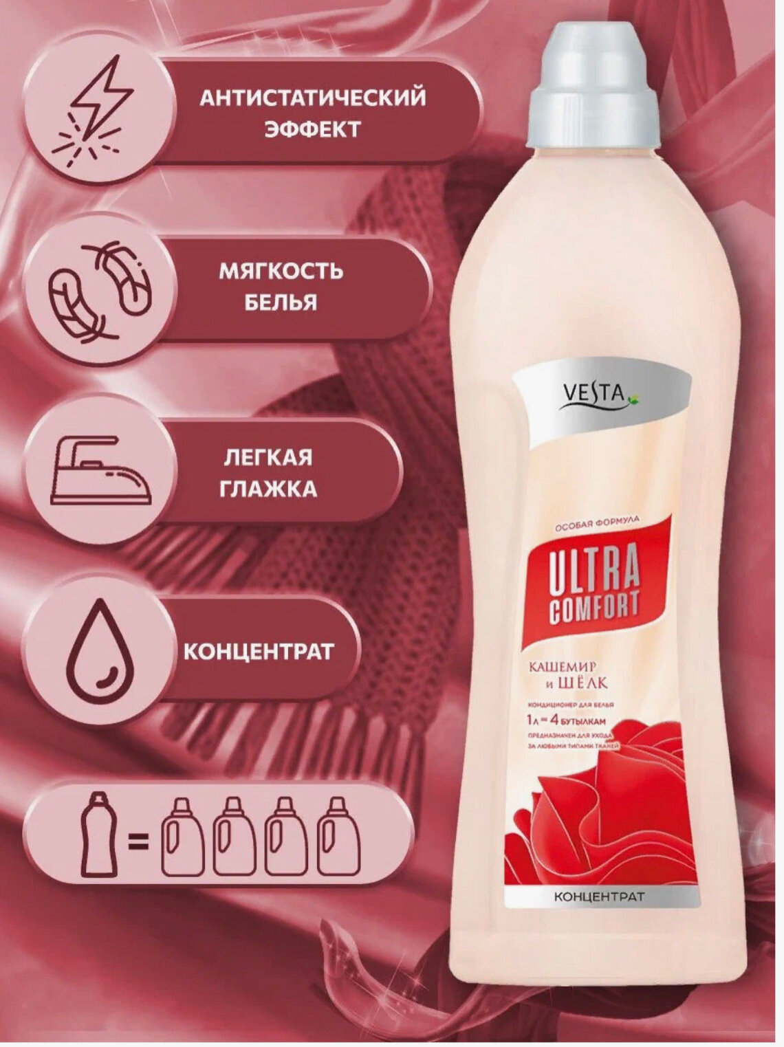 Кондиционер концентрированный для белья Алва VESTA Ultra Comfort Кашемир и шелк, 1 литр интересное: