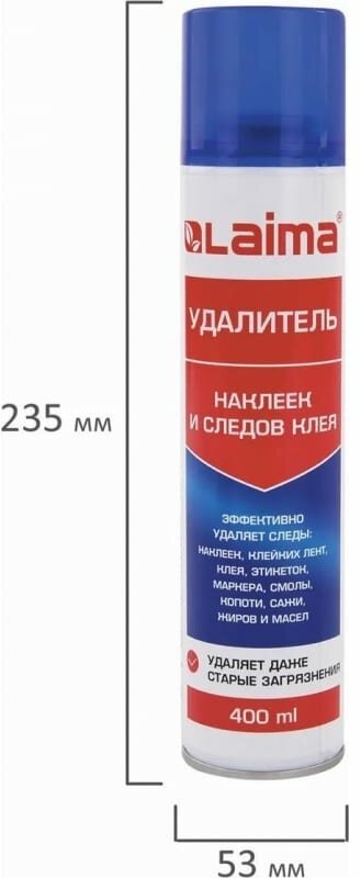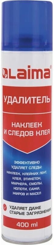 Купить Антискотч-cпрей для удаления этикеток, следов клея, липких лент, маркера, смолы, копоти, сажи, жиров и масел LAIMA, 400 мл, 607629