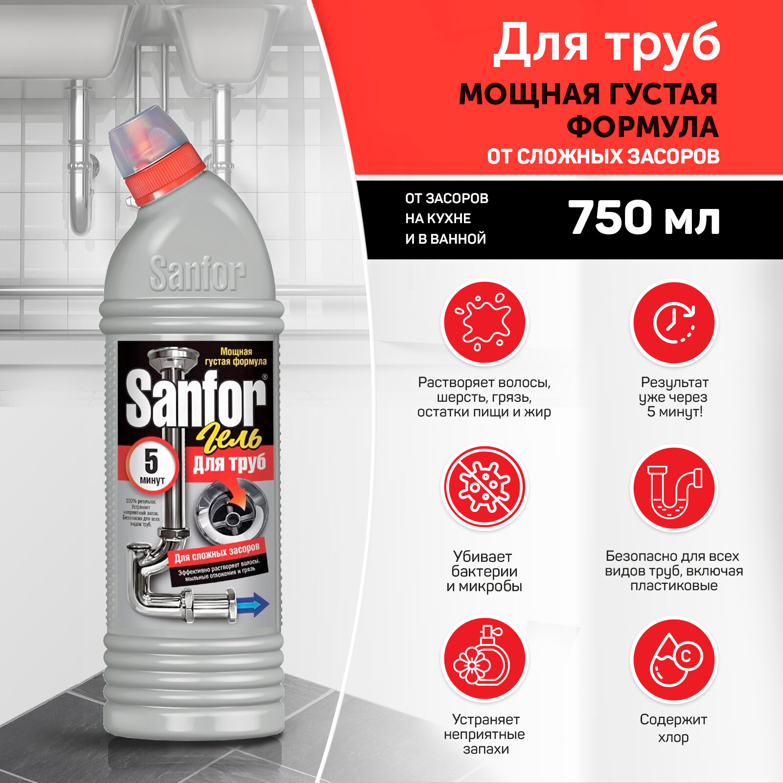 Купить Sanfor Набор бытовой химии для уборки вашего дома, 6 штук