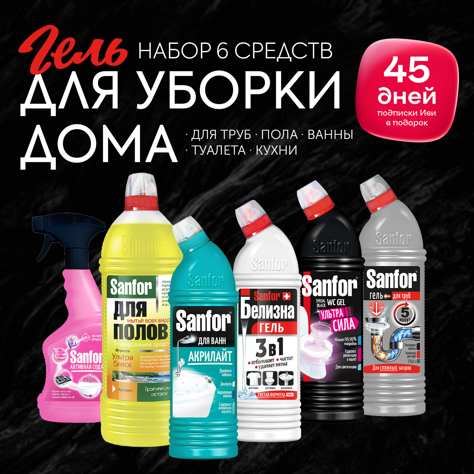 Sanfor Набор бытовой химии для уборки вашего дома, 6 штук интересное: