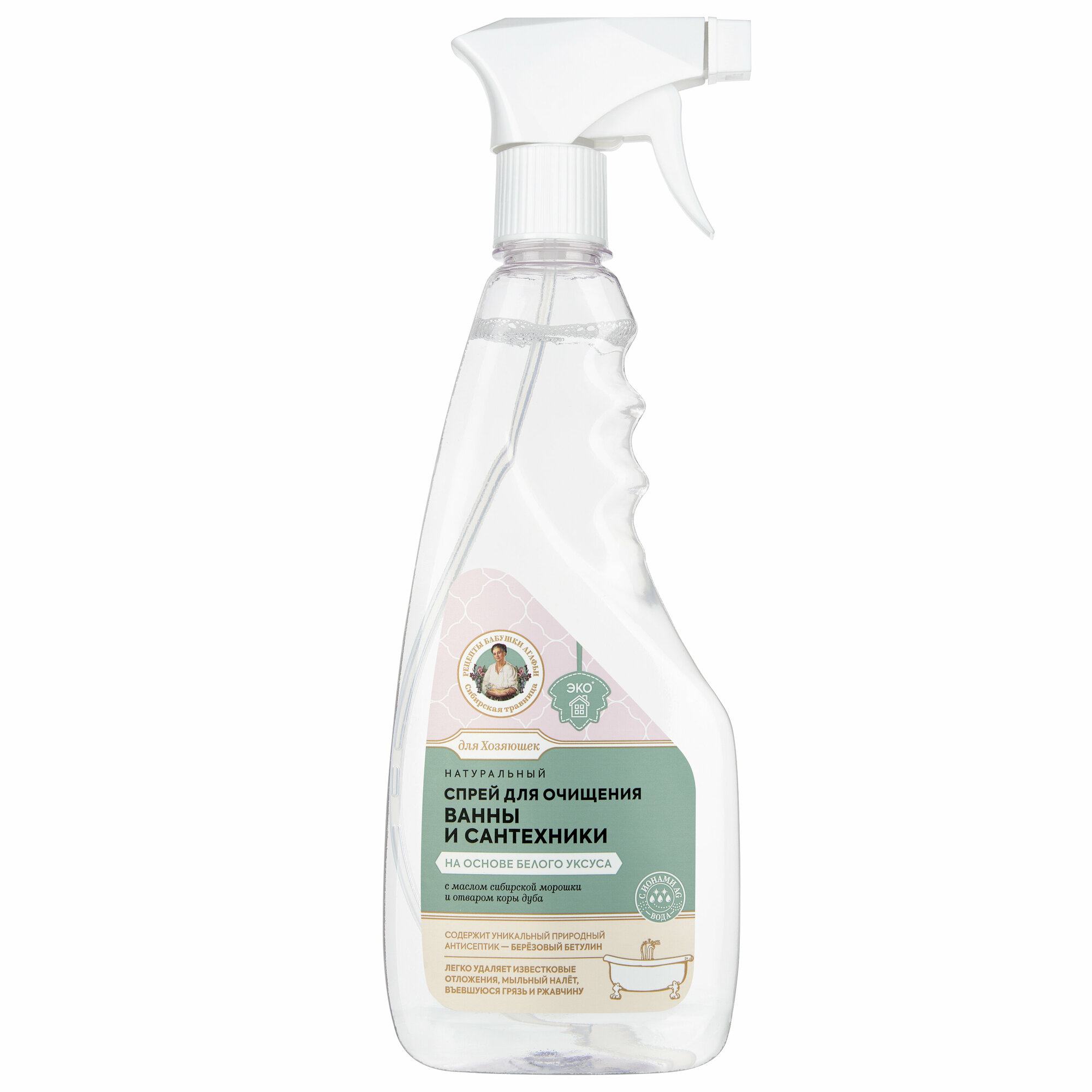 Спрей для очищения Рецепты бабушки Агафьи Для Хозяюшек ванны и сантехники на основе белого уксуса, 450 мл