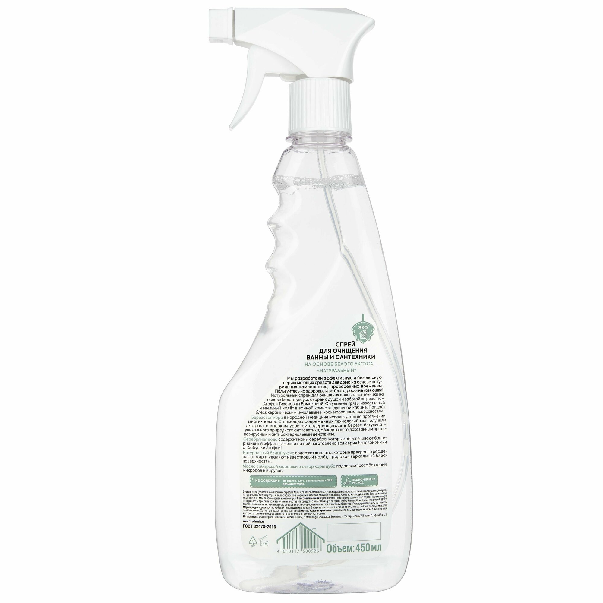 Рецепты бабушки Агафьи Спрей для очищения ванны и сантехники на основе белого уксуса, 450 мл интересное: