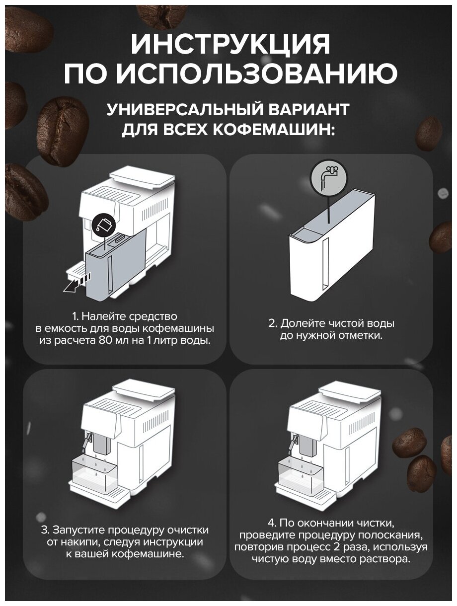 Средство для очистки кофемашины от накипи 250 мл. Жидкость декальцинатор для промывки, чистки и удаления известкового налета. Очиститель антинакипин подходит любых марок кофе машин.