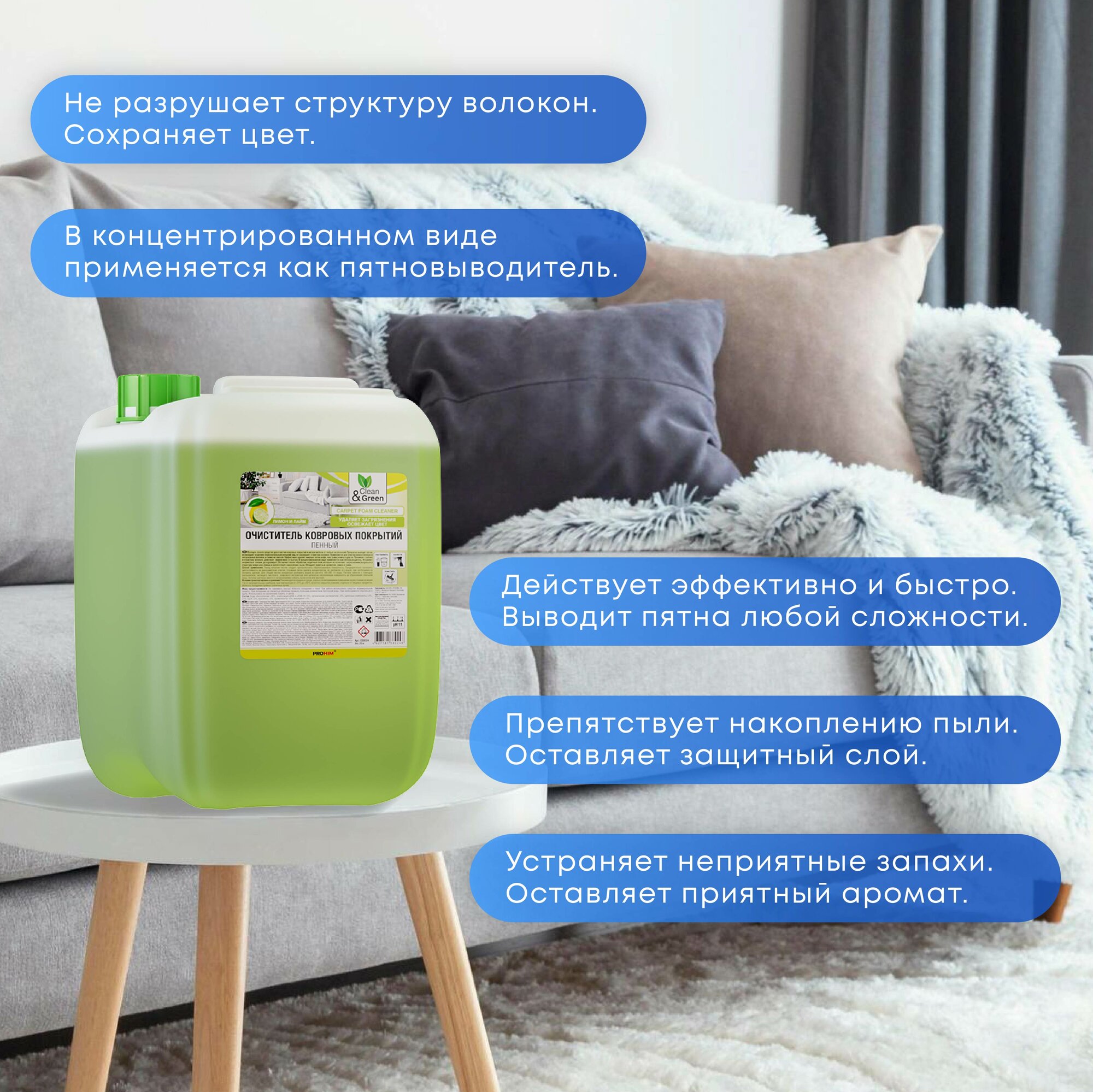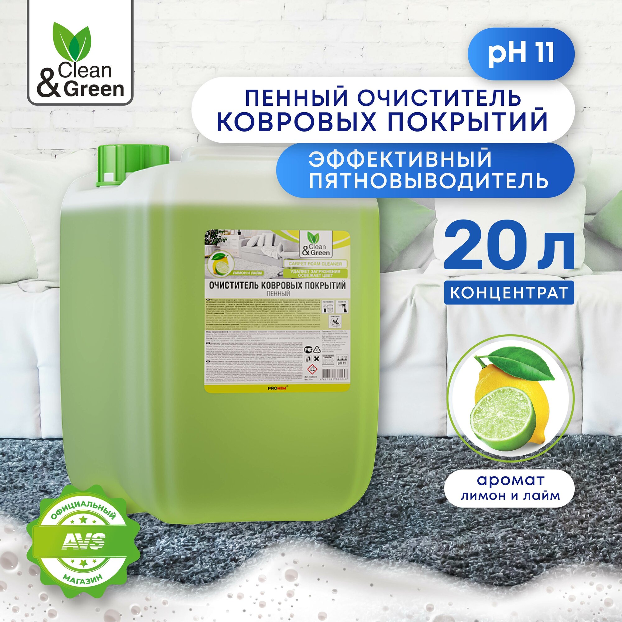 Очиститель ковровых покрытий (пенный) 20 кг Clean&Green CG8024 интересное: