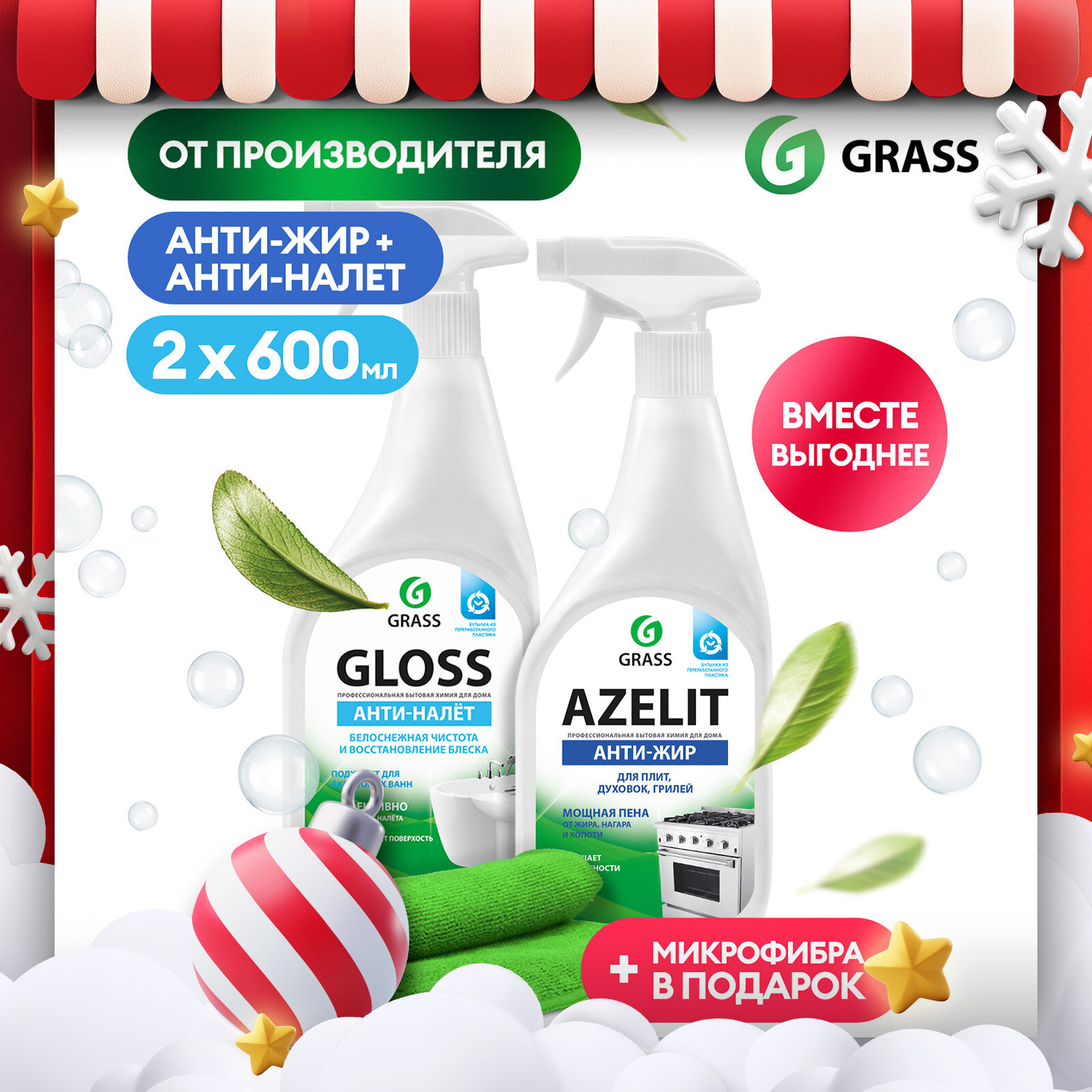 Купить Набор для уборки Грасс чистящие средства Антижир Азелит Azelit 600мл, средство для ванной комнаты Gloss по 600мл