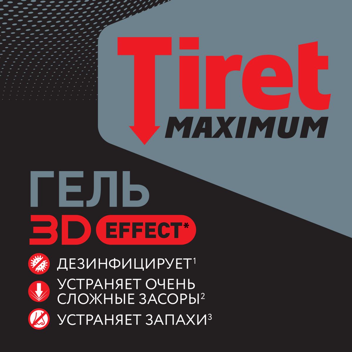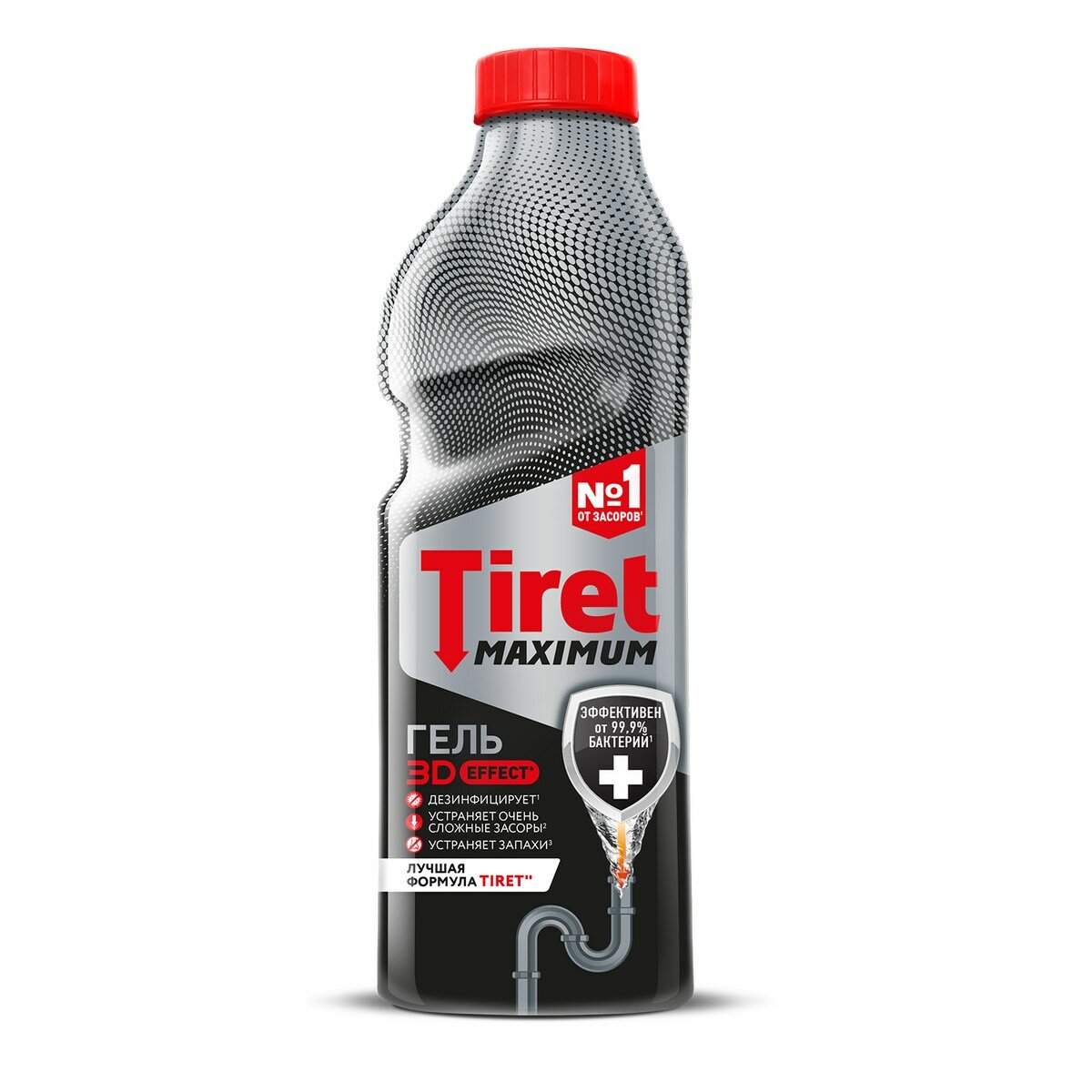 Гель Tiret MAXIMUM для удаления засоров в канализационных трубах, дезинфицирующий, 850 мл