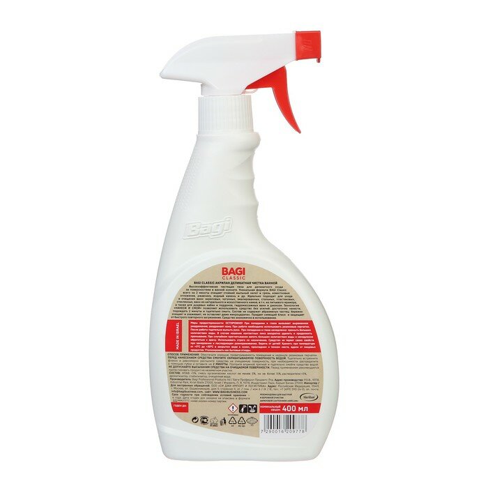 | Подробная комплектация | Средство для сантехники Bagi Classic АКРИЛАН деликатная чистка ванной 400мл |