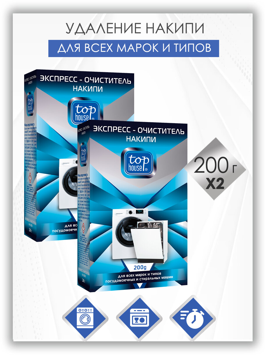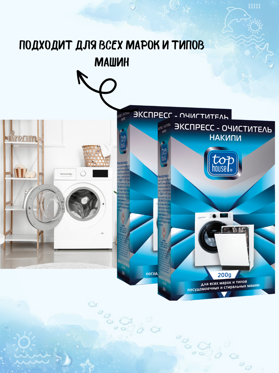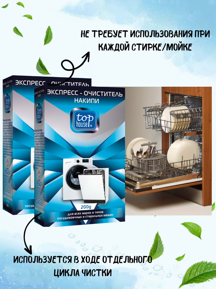 TOP HOUSE Экспресс-очиститель накипи для всех типов стиральных и посудомоечных машин, 200 г.*2 шт интересное:
