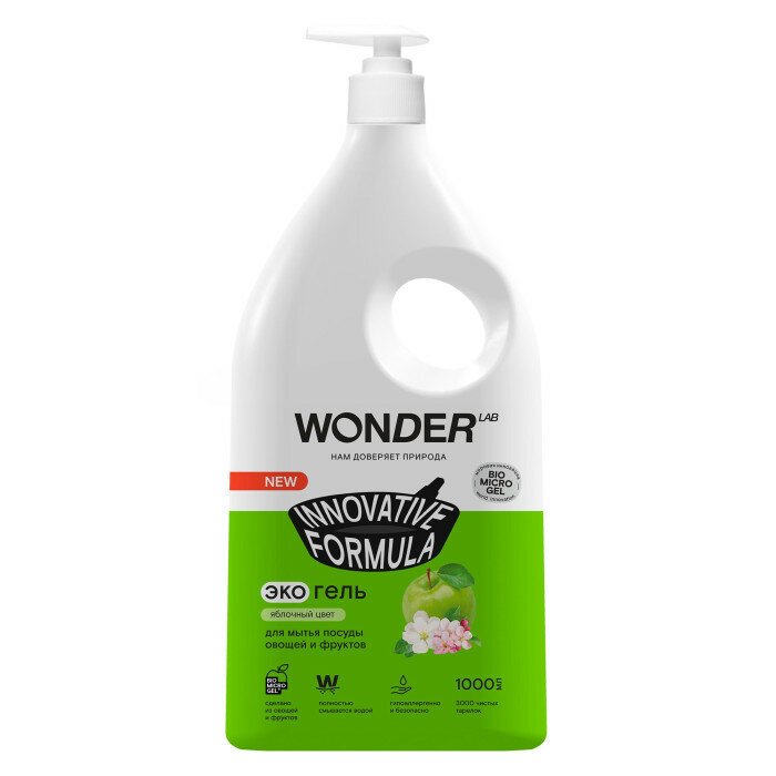 Купить WONDER LAB Экогель для мытья посуды, овощей и фруктов Яблочный цвет, 1 л