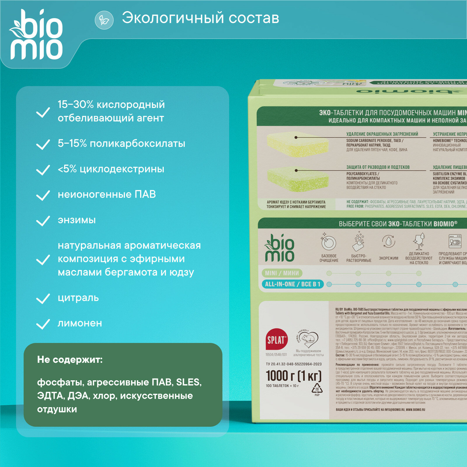 Купить BioMio Таблетки для посудомоечной машины. Бергамот и Юдзу, 10 г/100 шт