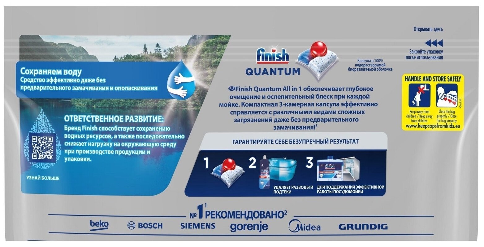| Дополнительная информация | капсулы для посудомоечной машины Finish Quantum произведены в Польше для внутреннего рынка Европы |