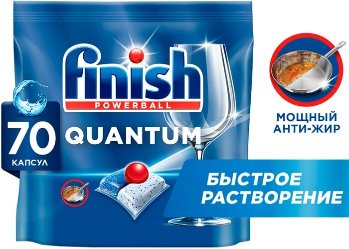 Капсулы для мытья посуды Finish Quantum для посудомоечной машины, таблетки для посудомоечных машин, 70 шт.