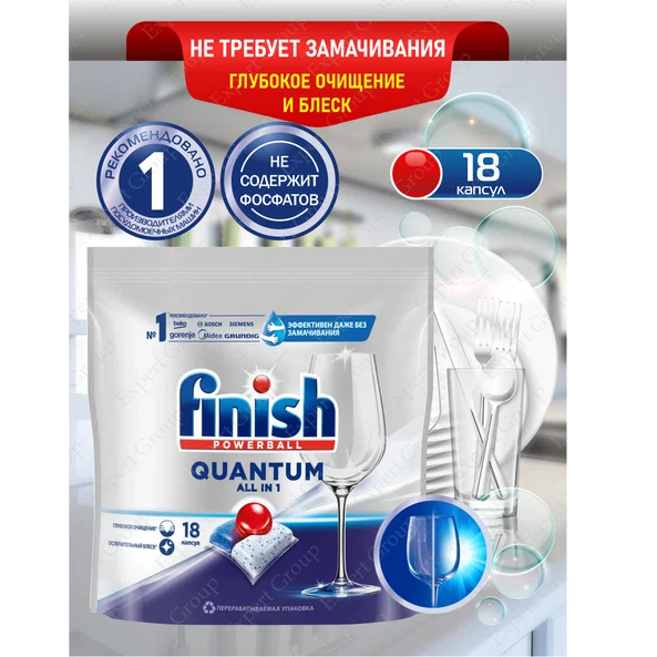 Купить Капсулы для мытья посуды Finish Quantum All in 1 для посудомоечной машины 18 шт