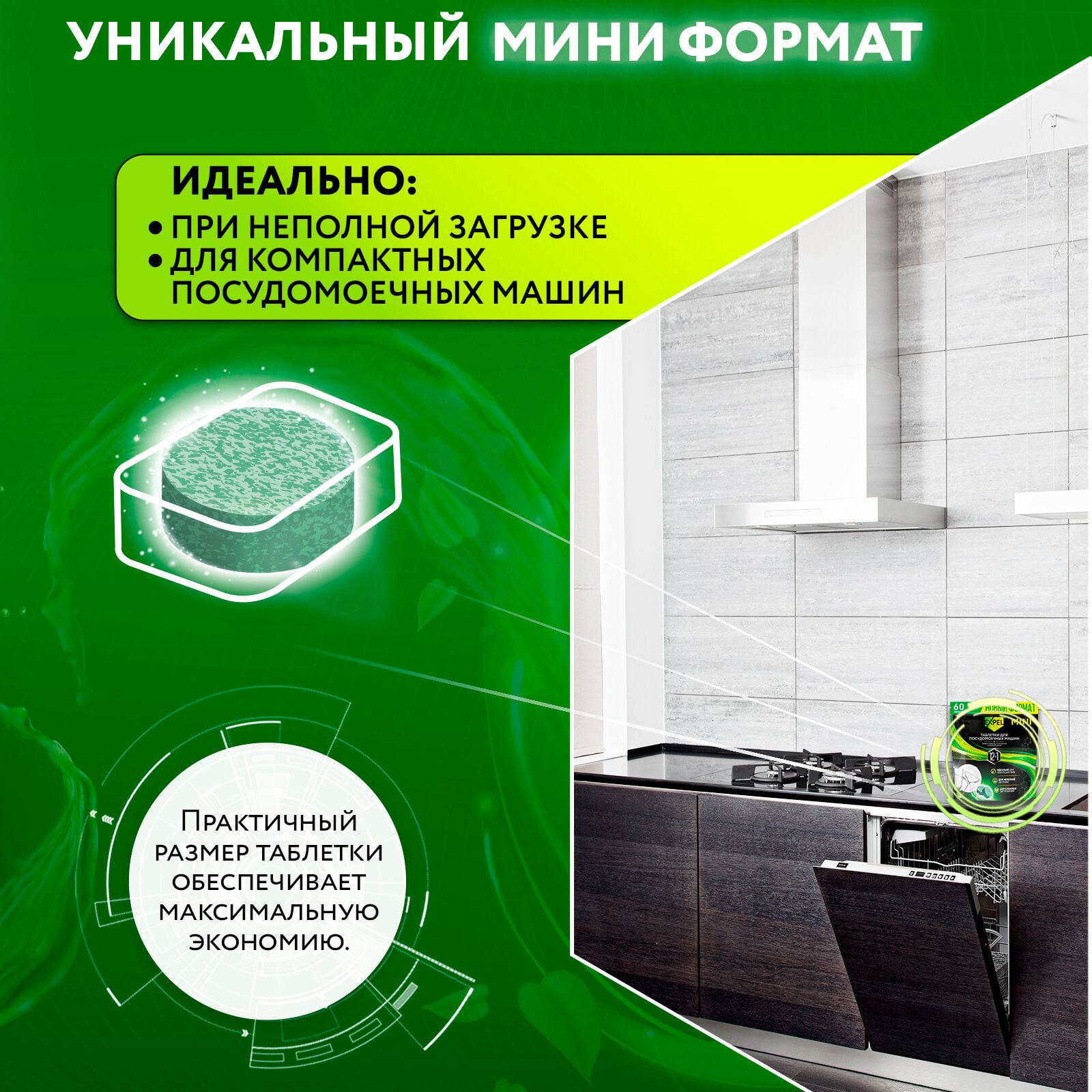 Таблетки мини для посудомоечных машин Expel, таблетки для ПММ 60 шт интересное: