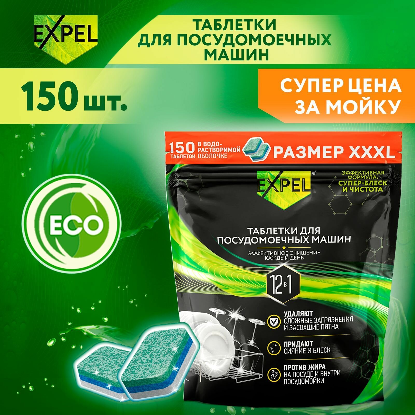 EXPEL Таблетки для посудомоечных машин, 150 шт