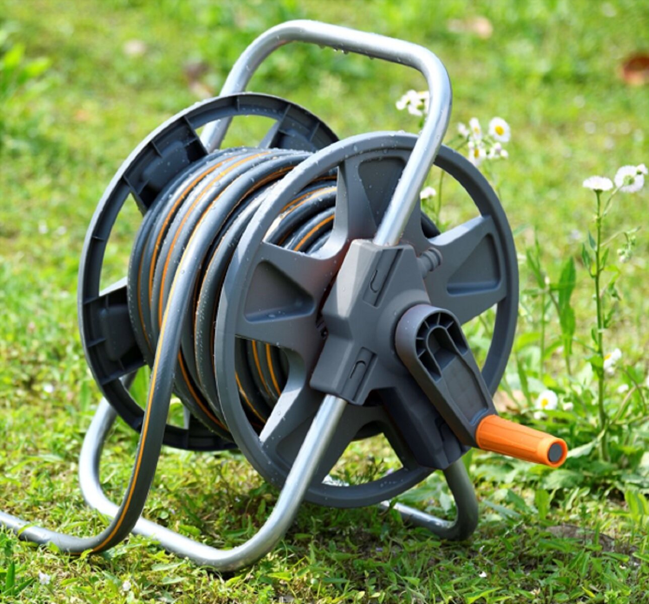 Переносная катушка для шланга GL 870. Вместимость: шланг 1/2"-45м, шланг 5/8"-35м, шланг 3/4"-30м