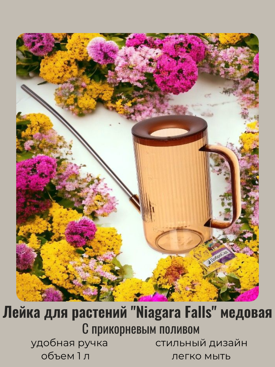 Купить Лейка для цветов и комнатных растений 1л "Niagara Falls" с прикорневым поливом, медовый ДоброСад
