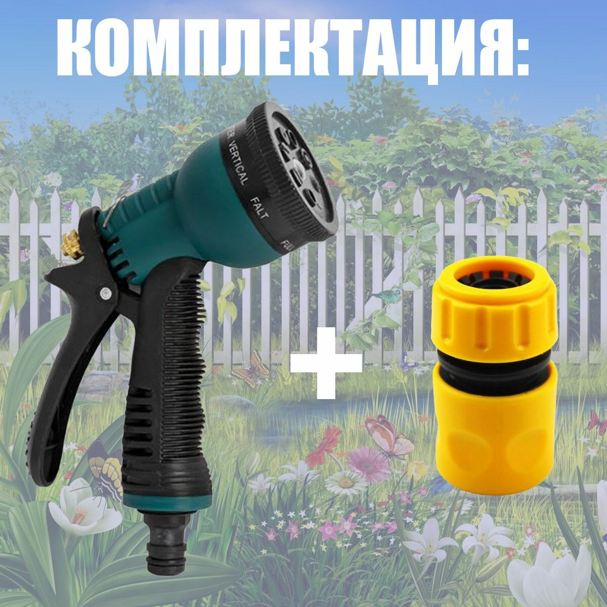 Пистолет для полива / Распылитель садовый с поворотной головкой 8 режимов + регулятор напора разбрызгиватель, поливочный инструмент интересное:
