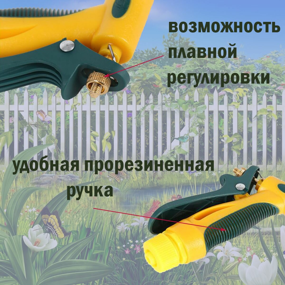 Пистолет для полива / Распылитель садовый + регулятор напора разбрызгиватель, поливочный инструмент интересное: