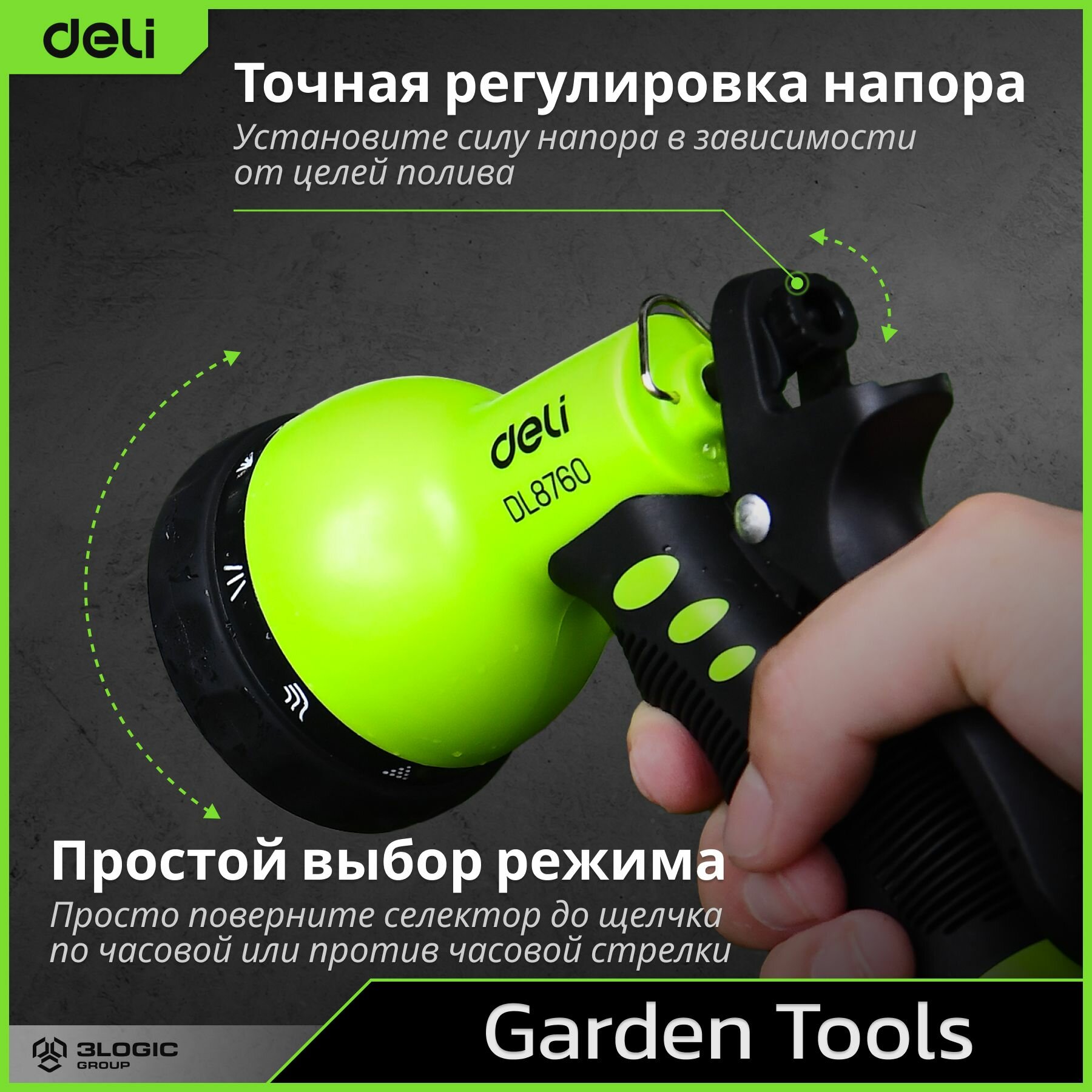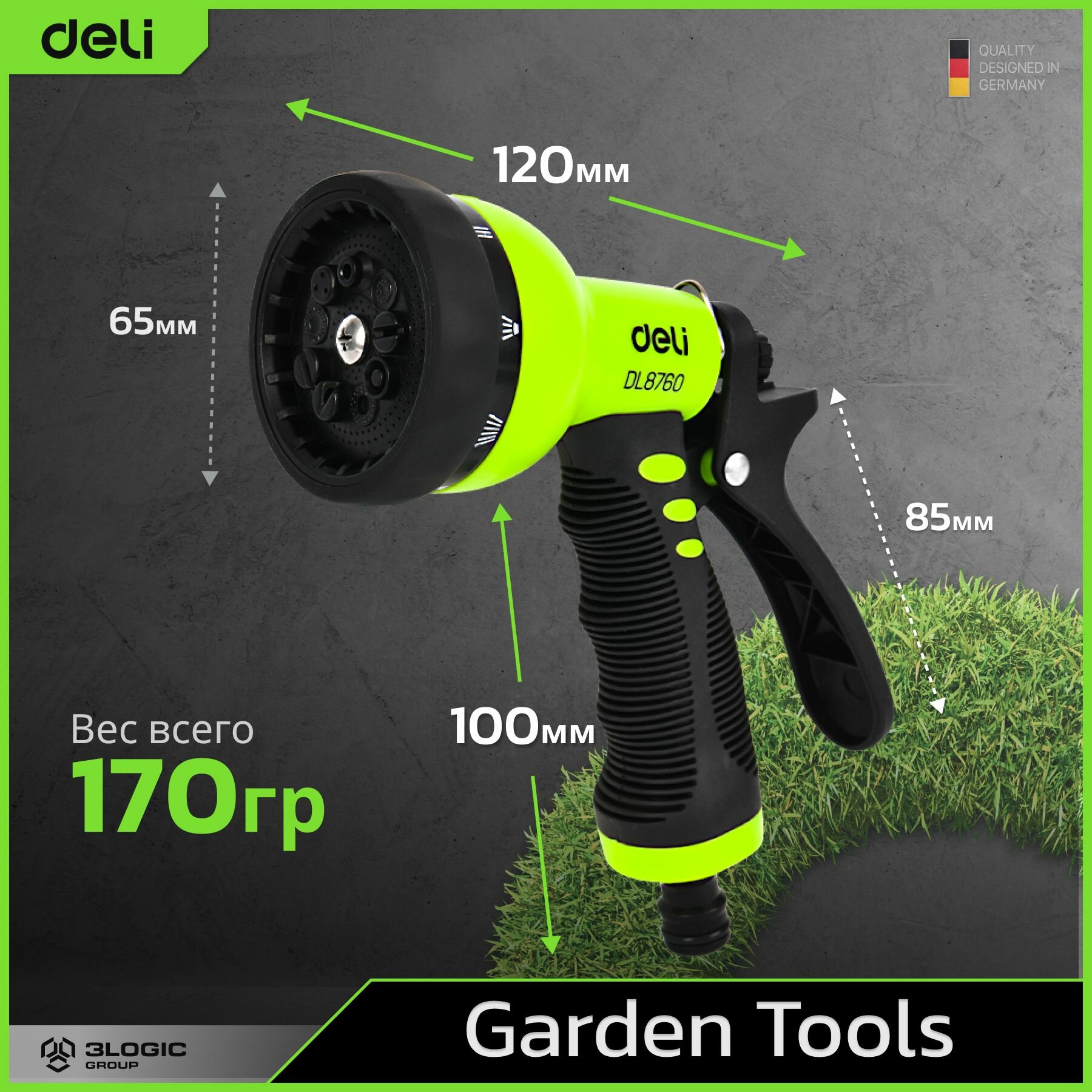 Купить Пистолет-распылитель поливочный Deli DL8760 (9 режимов распыления, пластиковый корпус, фиксатор курка, прорезиненная рукоять)