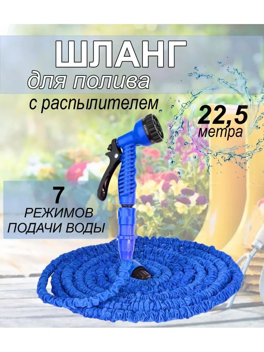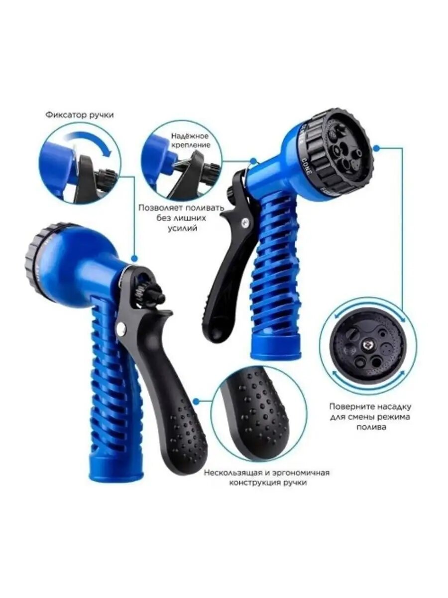 Шланг для полива Амин Маркет 2 Xhose , удлиняющийся, 75 м, синий шланг для дачи и сада